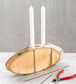3. Stecken Sie die Kerzen mit Steckdraht in den Steckschwamm. Sie können hierfür alternativ auch Stabkerzenhalter aus Metall verwenden.