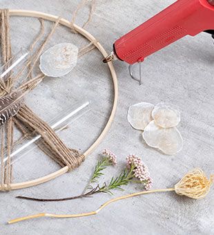 4. Kleine Details geben Ihrem Traumfänger den letzen Schliff. Befüllen Sie dazu abschließend noch die Glasröhrchen mit frischen oder getrockneten Blumen und Blättern.