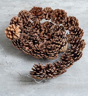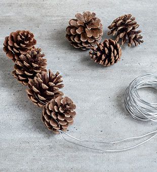 1. Sortieren Sie Ihre Schwarzkieferzapfen so, dass alle ungefähr die gleiche Größe haben. Befestigen Sie die Zapfen mit Aluminiumdraht. Bilden Sie eine Schlange aus Ihren Zapfen - schieben Sie die Schuppenblätter ineinander, um die Zapfen miteinander zu verbinden.