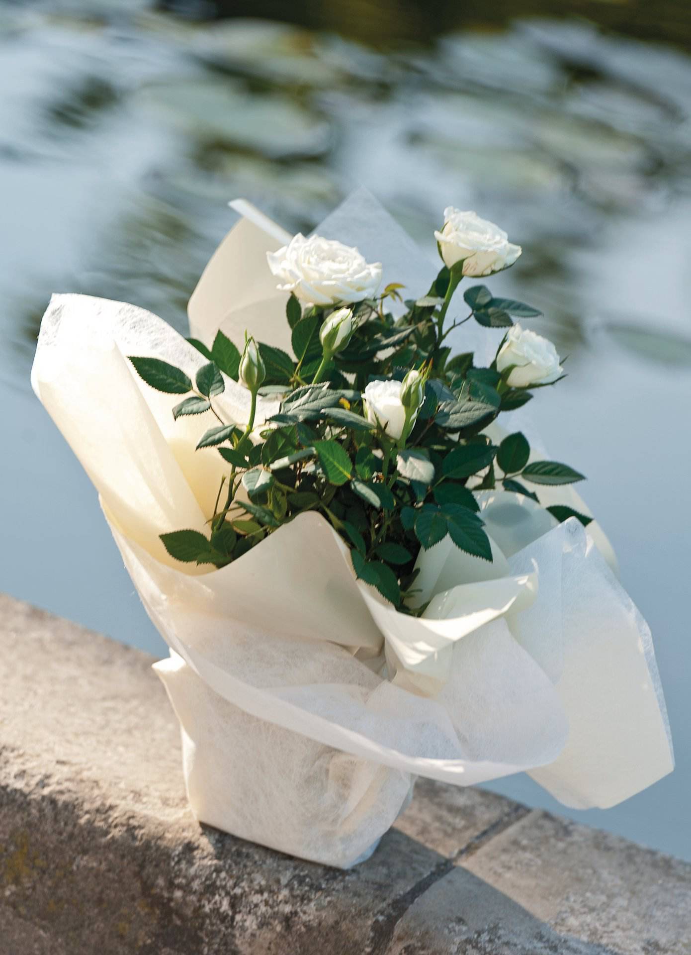 Quadratische, 2-teilige Blumenmanschette in 2 Größen. Je 25 Stück aus Folie und 25 Stück aus Vliesstoff.