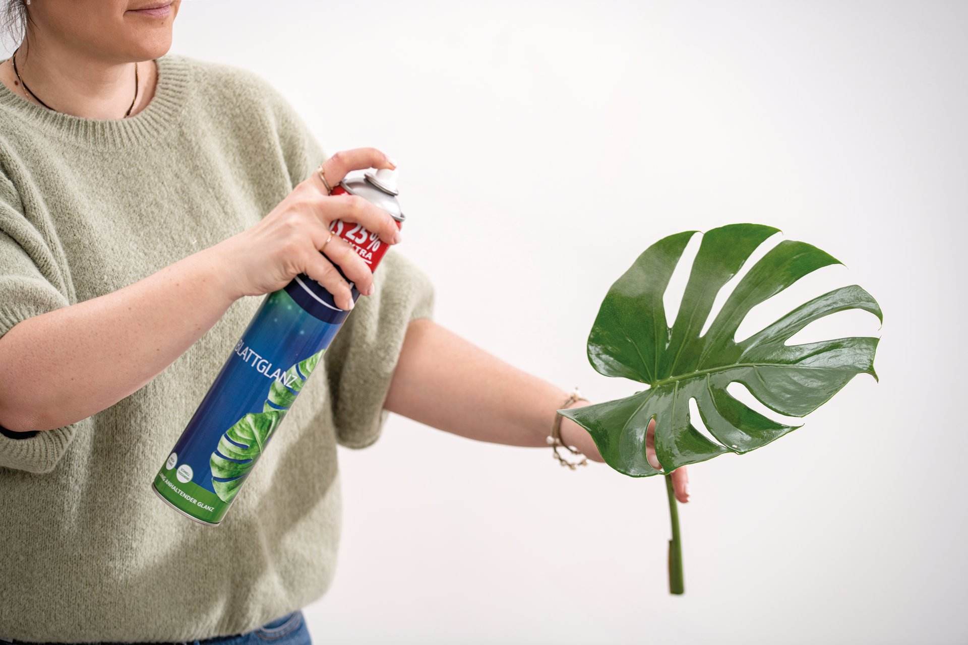 Das Blattglanz-Spray verleiht Blättern Glanz und gesundes Aussehen. Geeignet für alle Blattpflanzen - außer bei behaarten Blättern und Farnen. Verhindert Staubablagerungen, verhindert und beseitigt Kalk- und Wasserflecken.