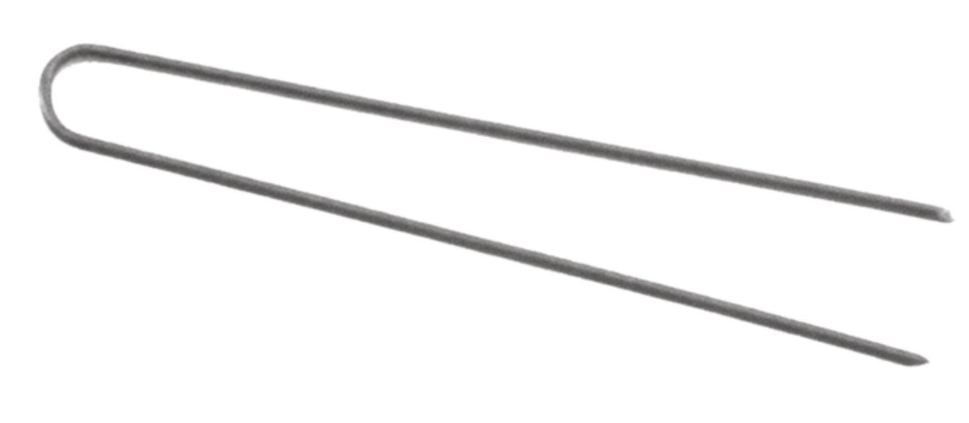 Aus Draht gebogene Nadeln in U-Form, zum Beispiel zum Fixieren von Blättern und Blüten.