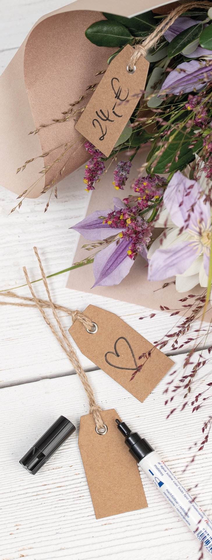 Etiketten aus Karton mit einer ca. 11 cm langen Schnur. Eine Öse verhindert schnelles Ausreißen.