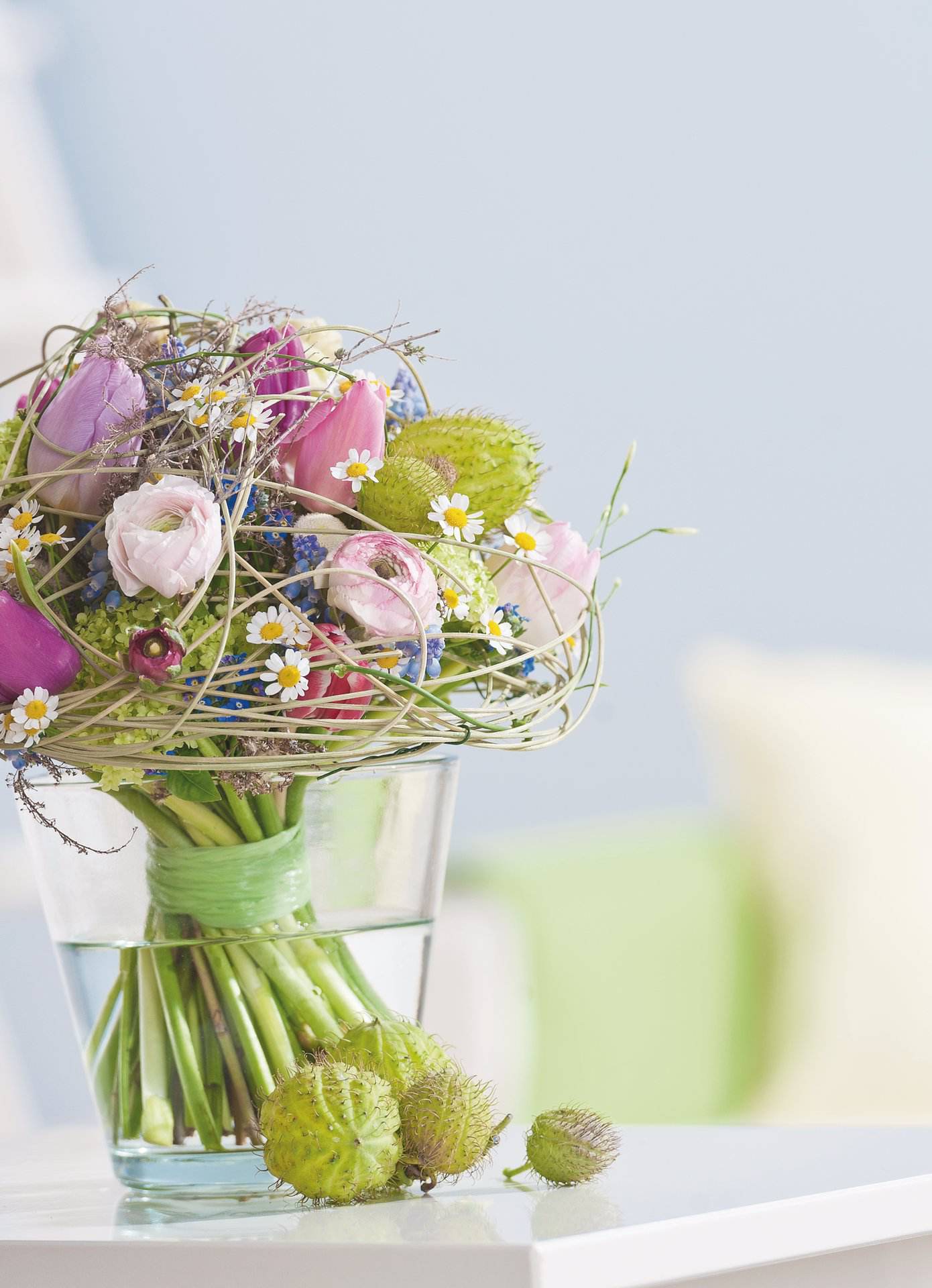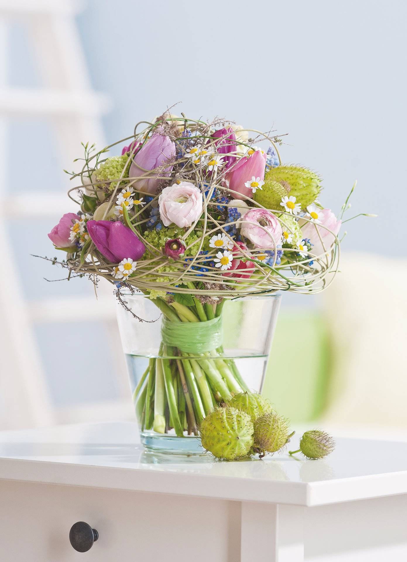 Glasvase mit leicht konischer Form. Ideal für kompakte Sträuße.
