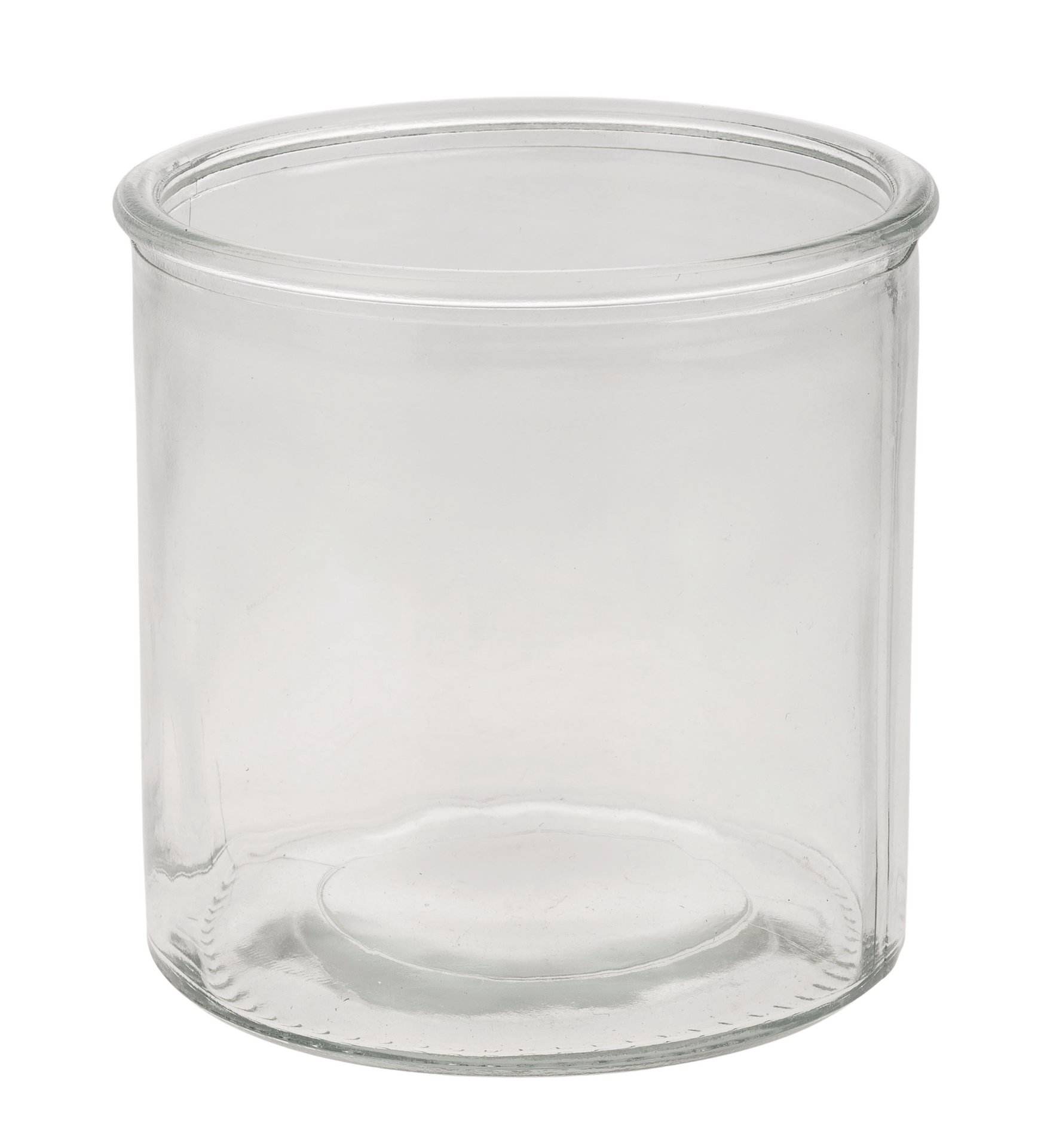 Runder Glastopf mit verstärktem Rand.