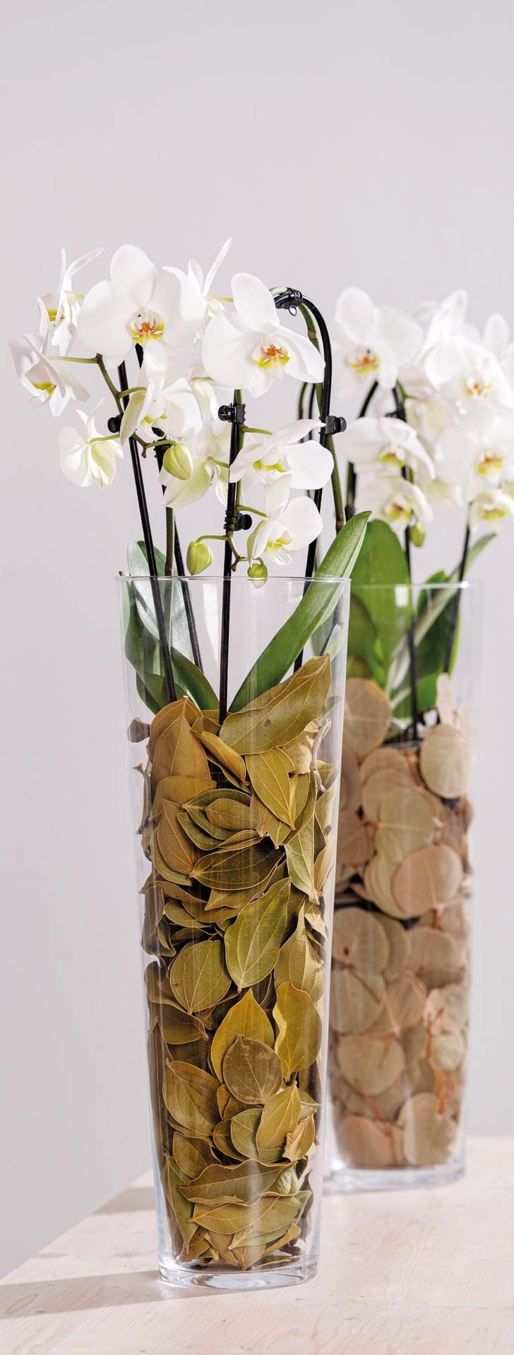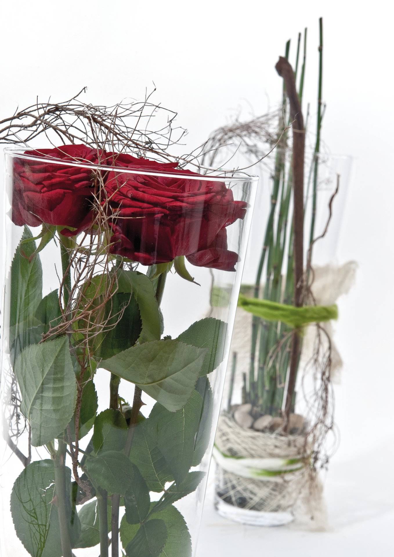 Große, konische Glasvase. Ideal für das Befüllen mit Dekomaterial.