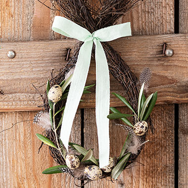 Statt eines klassischen Türkranzes können Sie Ihren Kunden ein Ei aus Mühlenbeckia anbieten.