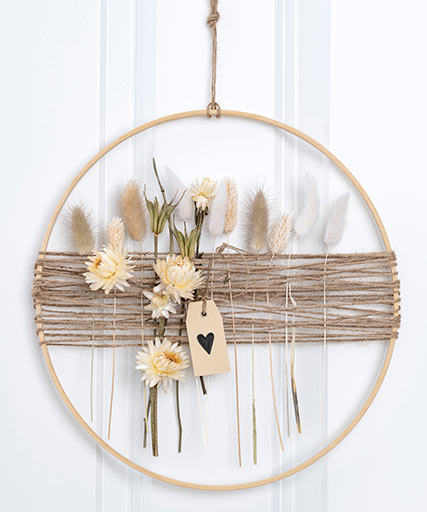 Ein Gestaltungsrahmen gefüllt mit Trockenblumen ist eine tolle Alternative zu einem Loop, wie wir ihn kennen.