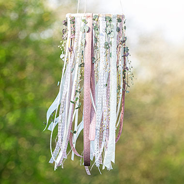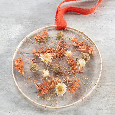 Im Fenster, als Türschmuck oder an der Wand kommt diese Trend-Deko zur optimalen Geltung. Hier zeigen wir Ihnen, wie Sie im Handumdrehen und mit nur wenig Materialaufwand, einen schnellen Mitnahmeartikel für Ihre Kunden zaubern.