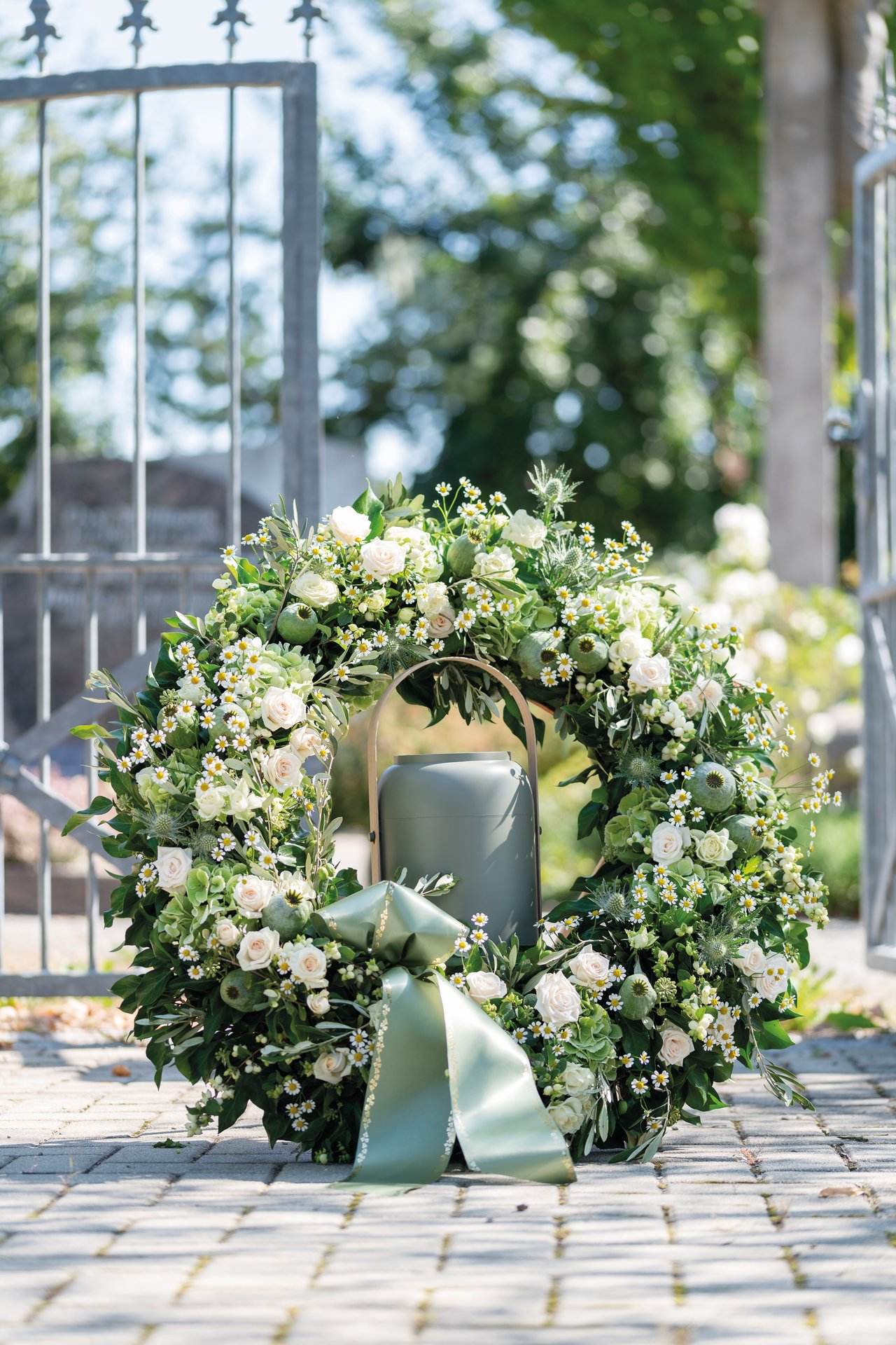 Die Besonderheit der Sargauflage Viti® ist der Holzboden. Die mittige Aussparung garantiert eine sichere Verankerung der Vitifix (N° 194935) im Steckschaum. Bei jeder Sargauflage Viti® sind pro VE zwei Vitifix inklusive. Die kleinste Größe N° 111111 enthält nur ein Vitifix.