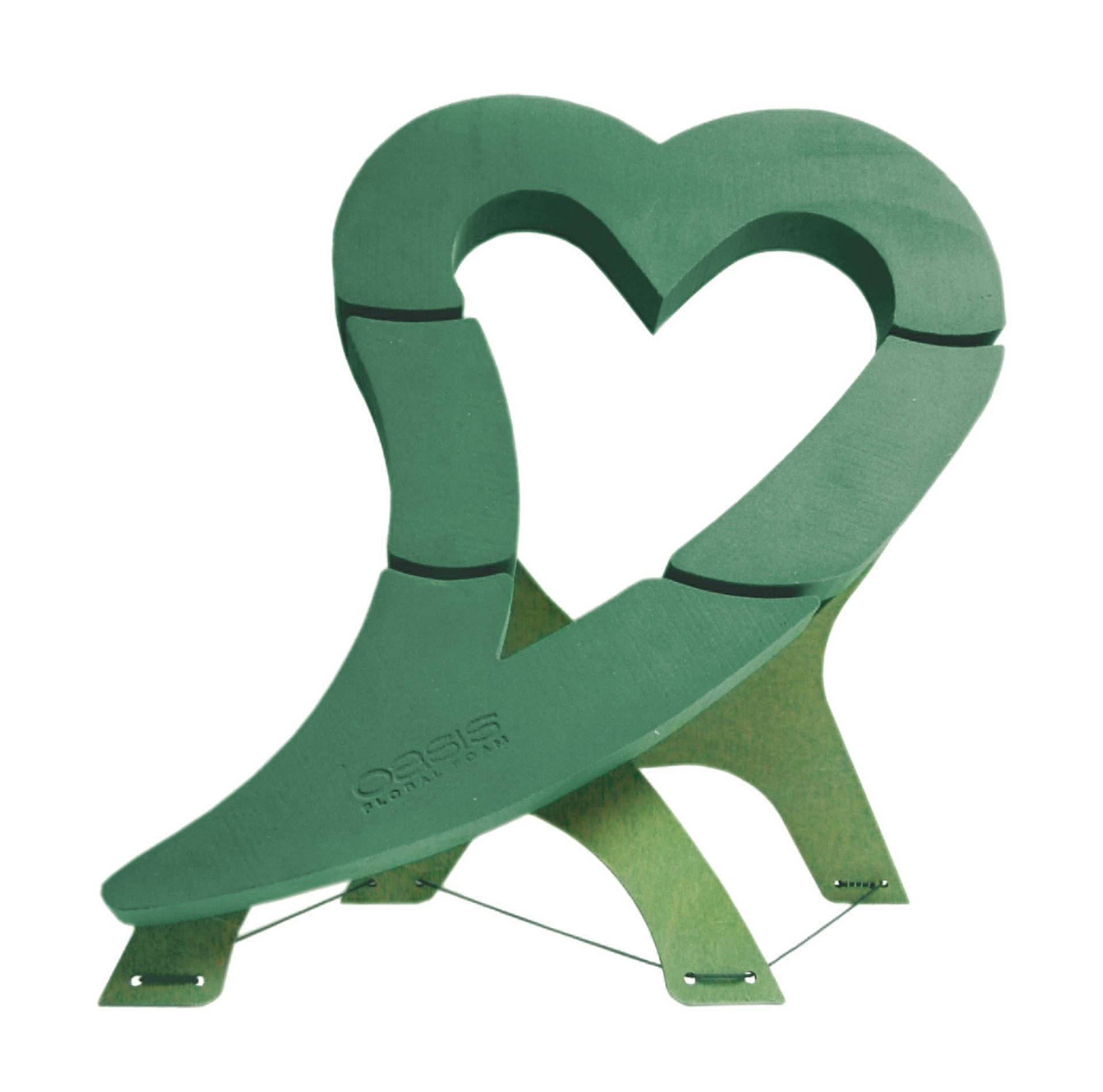 Nass-Steckschaum in moderner Herzform. Mit Naturholzboden und neuem verbessertem Aufklappmechanismus. Die quer verlaufenden Schnittlinien verhindern Drainage.