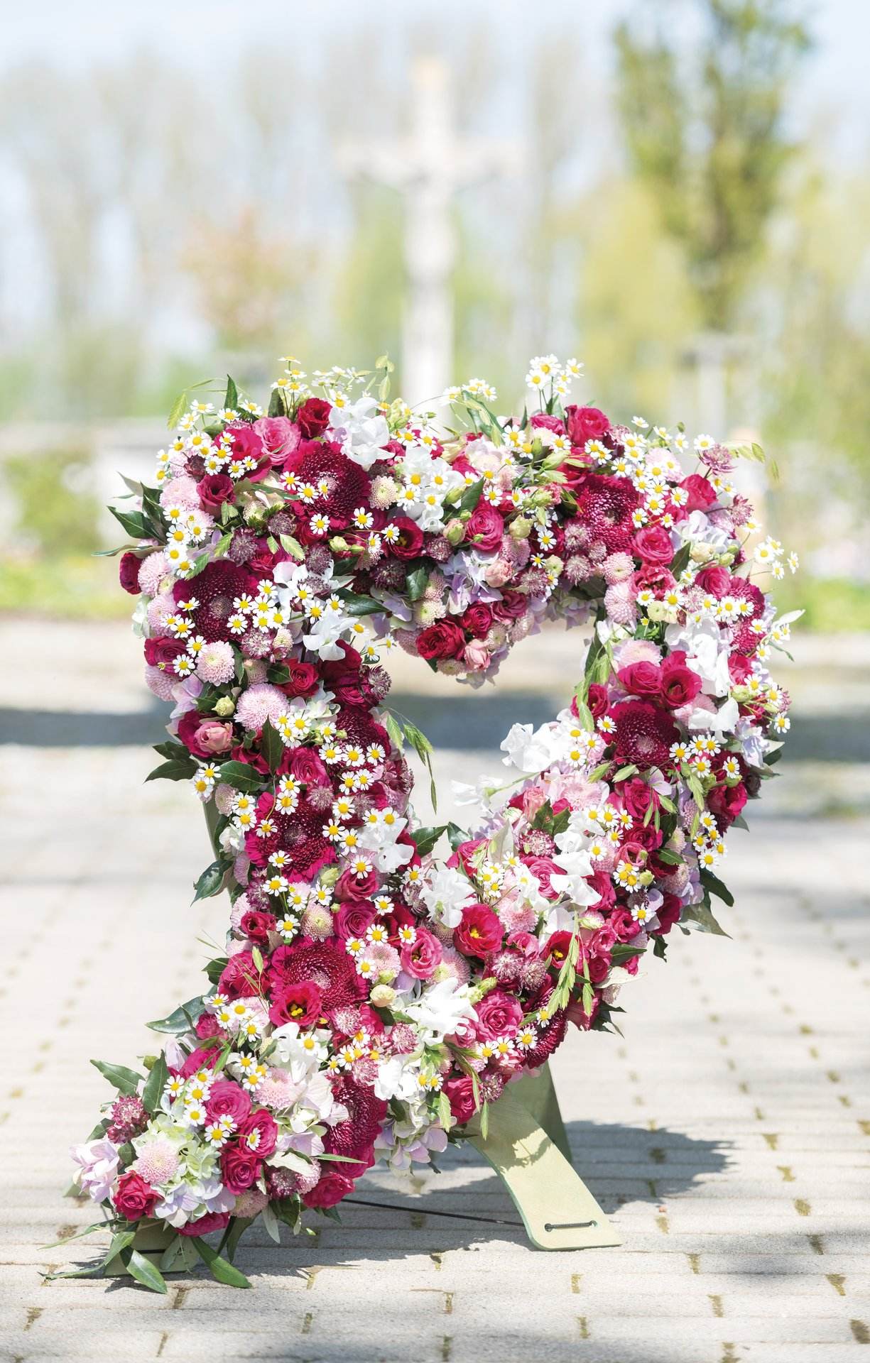 Nass-Steckschaumherz mit Drainage und stabiler Holzunterlage, zum Stellen. Die Urne steht auf einem stabilen Holzpodest.