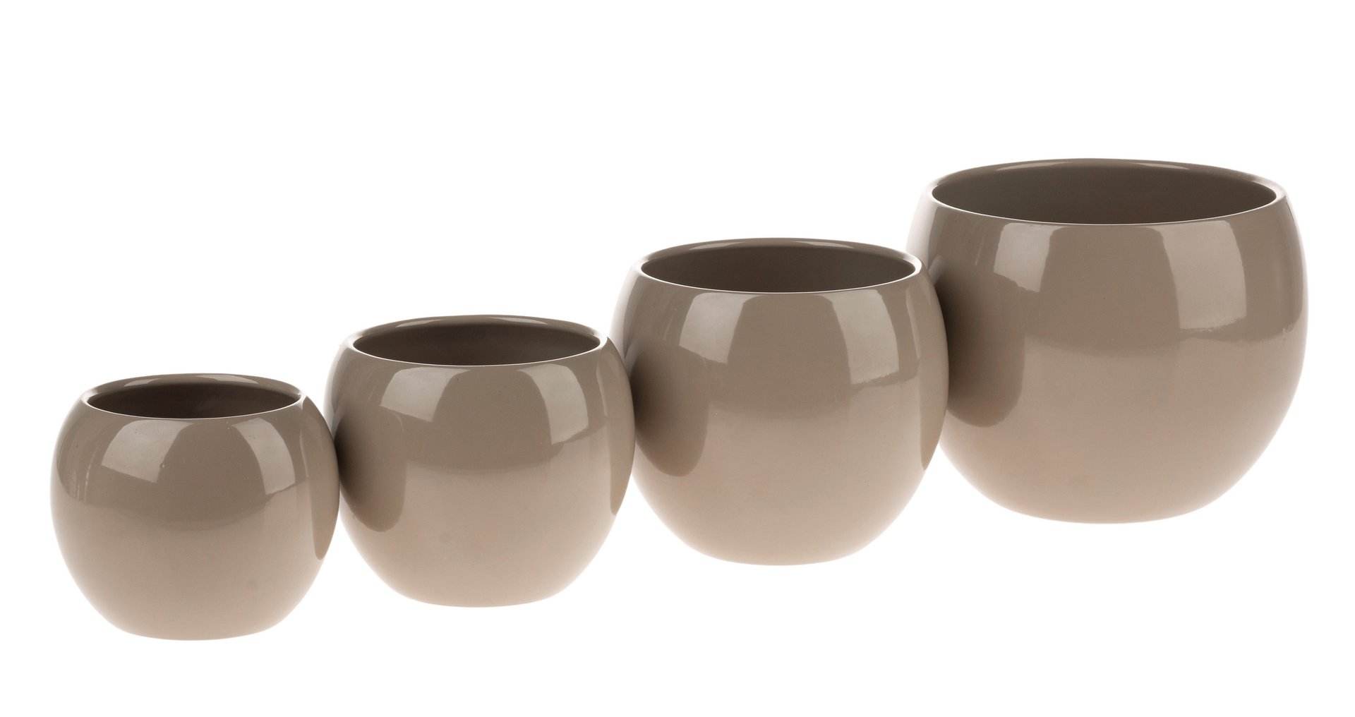 Glänzender Keramiktopf in Kugelform in verschiedenen Größen und Farben.