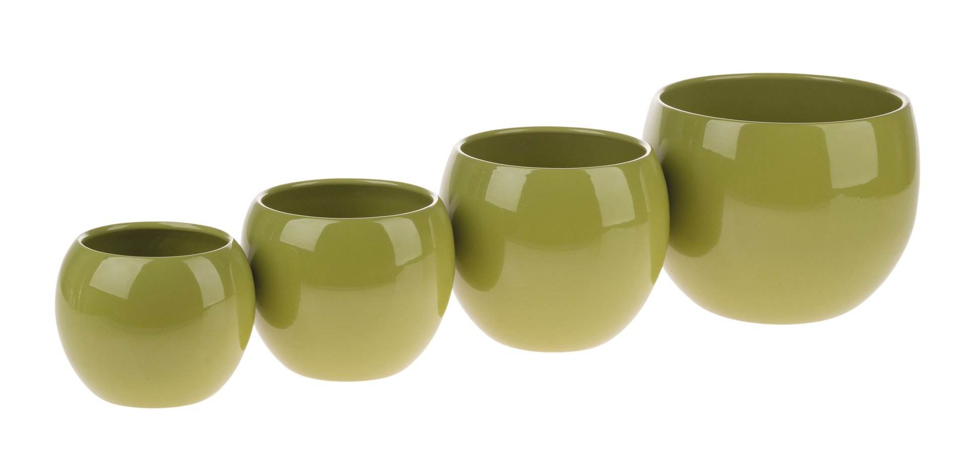 Glänzender Keramiktopf in Kugelform in verschiedenen Größen und Farben.