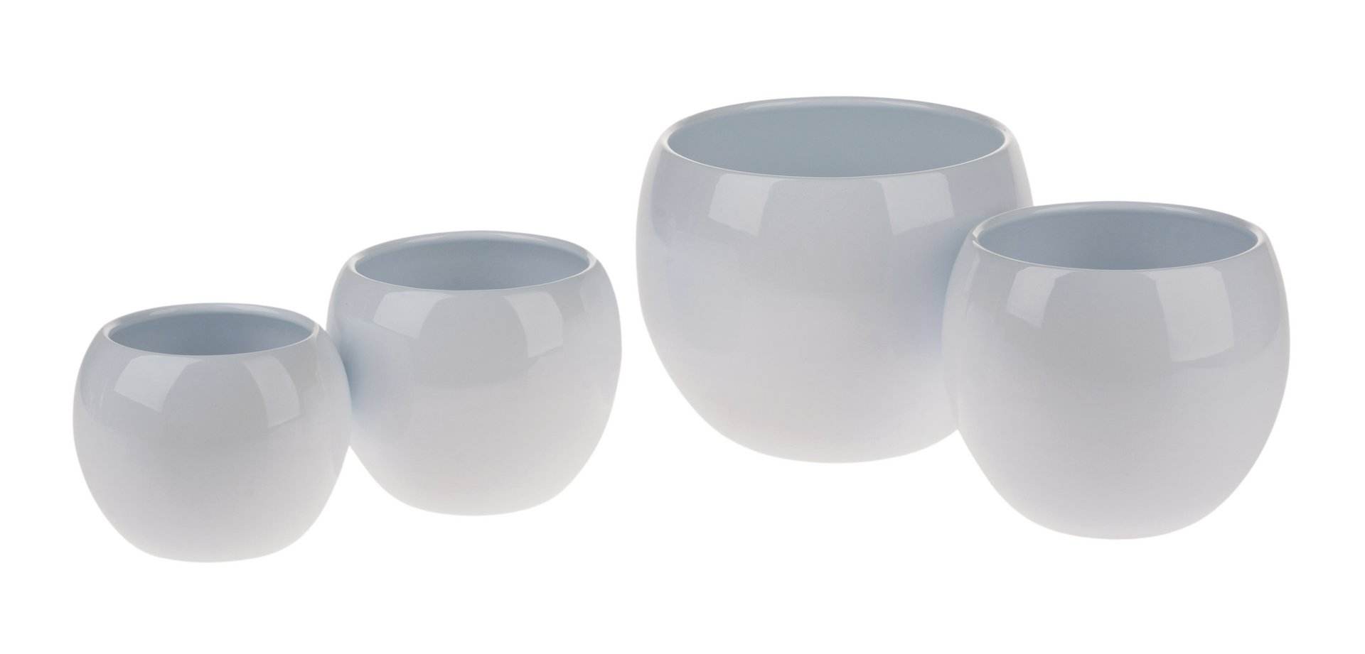 Glänzender Keramiktopf in Kugelform in verschiedenen Größen und Farben.