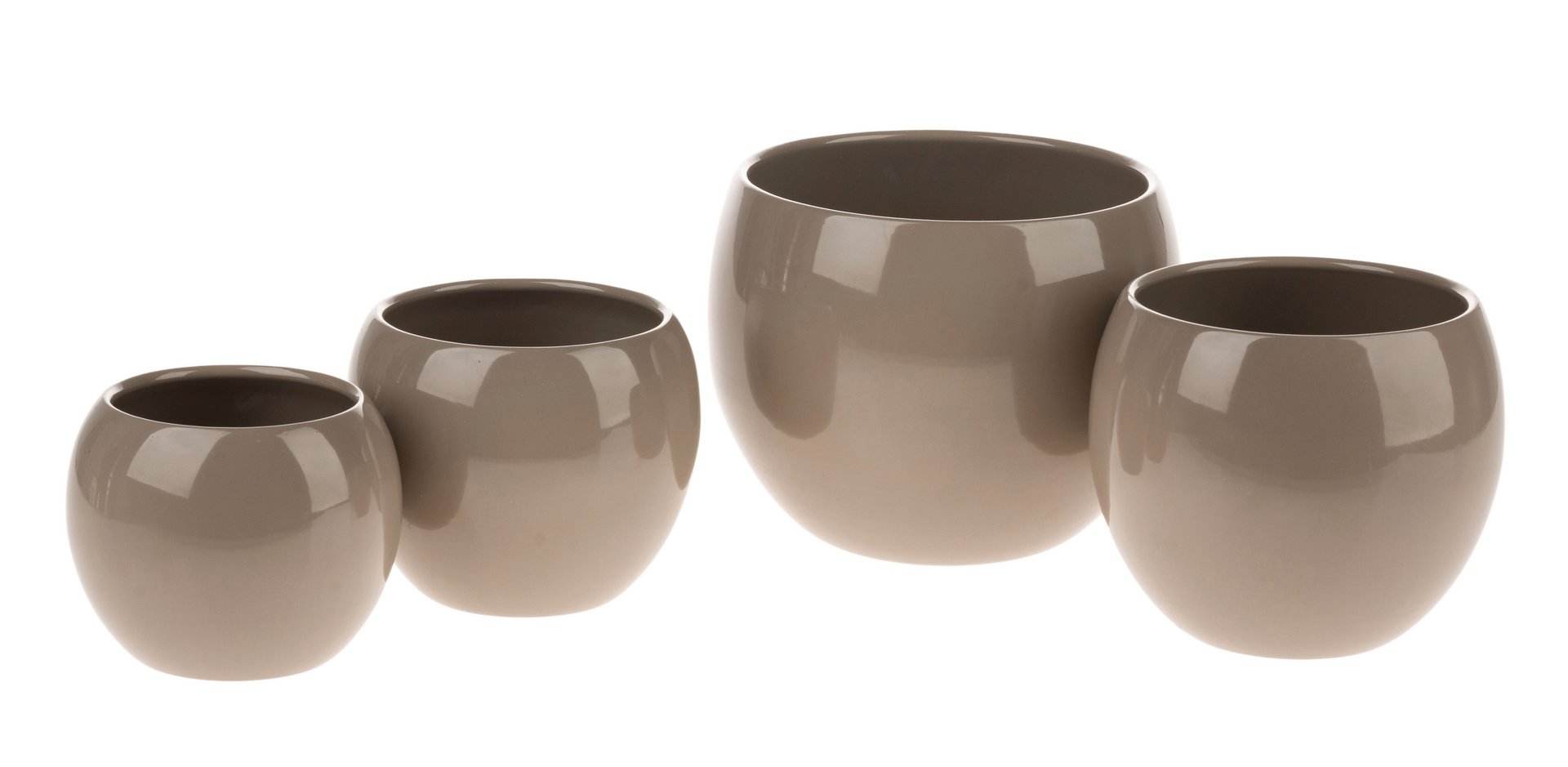 Glänzender Keramiktopf in Kugelform in verschiedenen Größen und Farben.