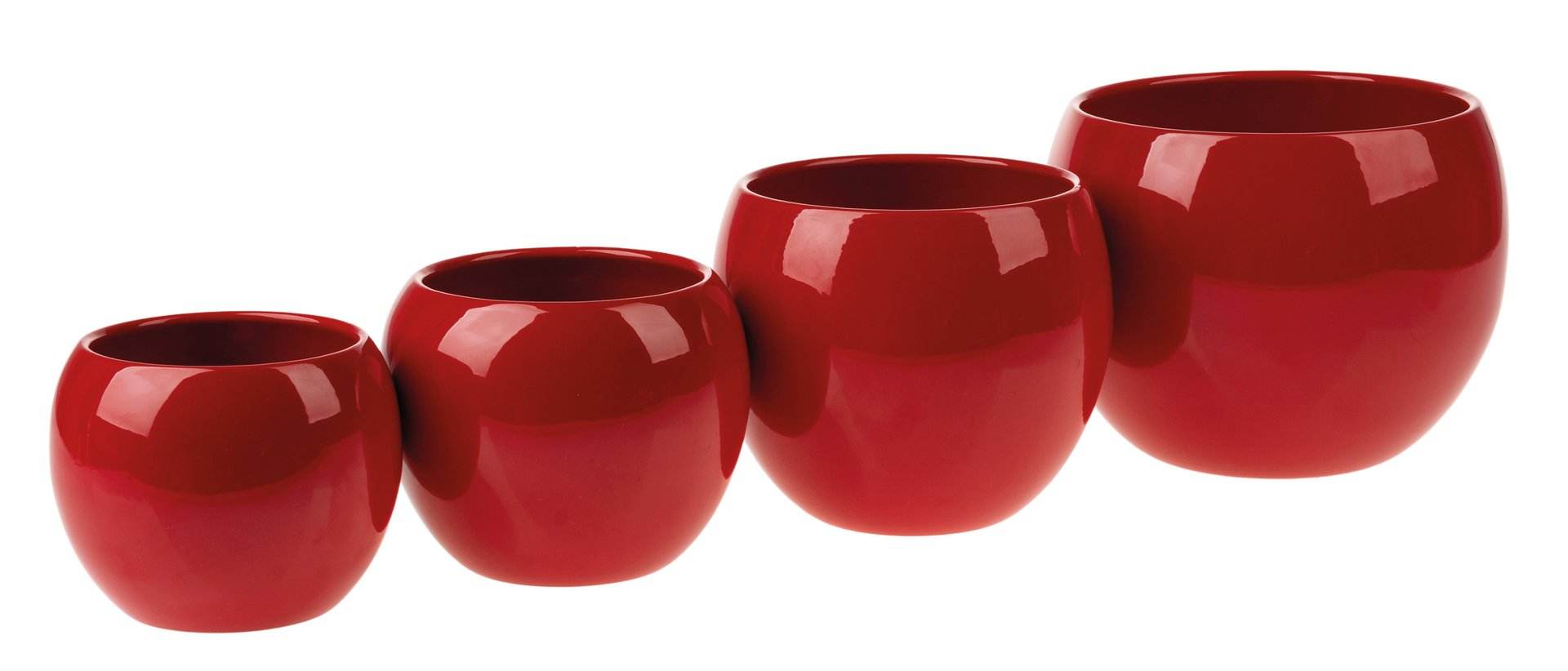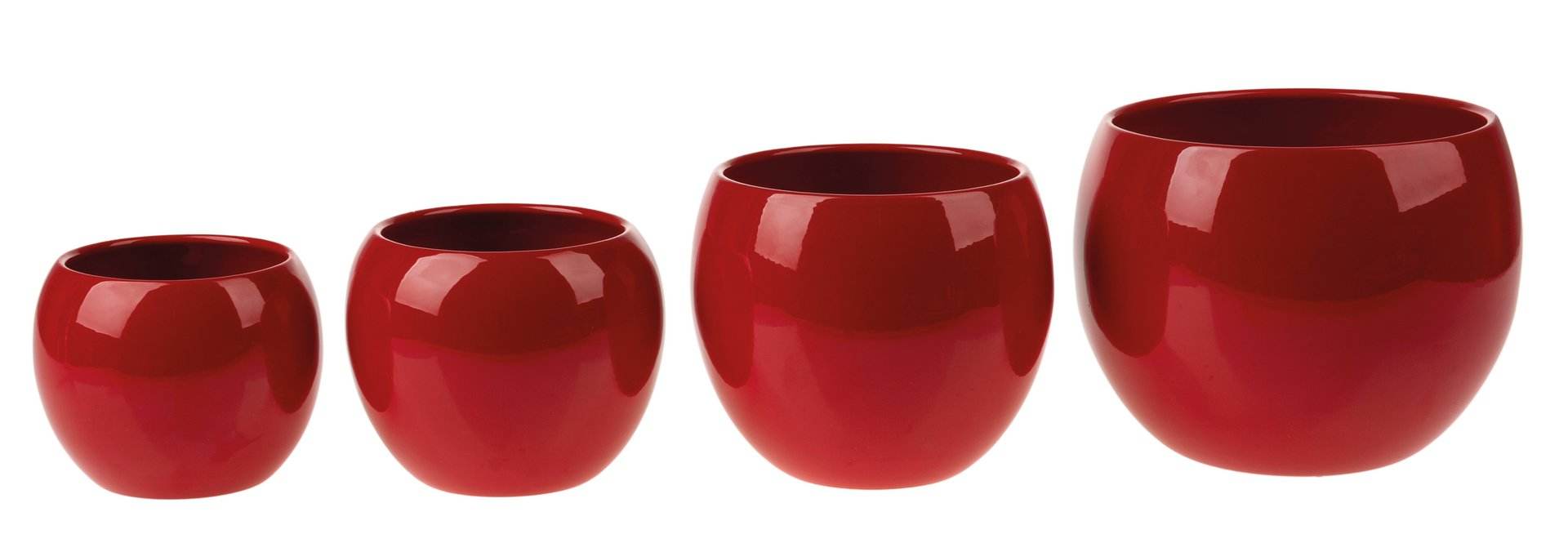 Glänzender Keramiktopf in Kugelform in verschiedenen Größen und Farben.