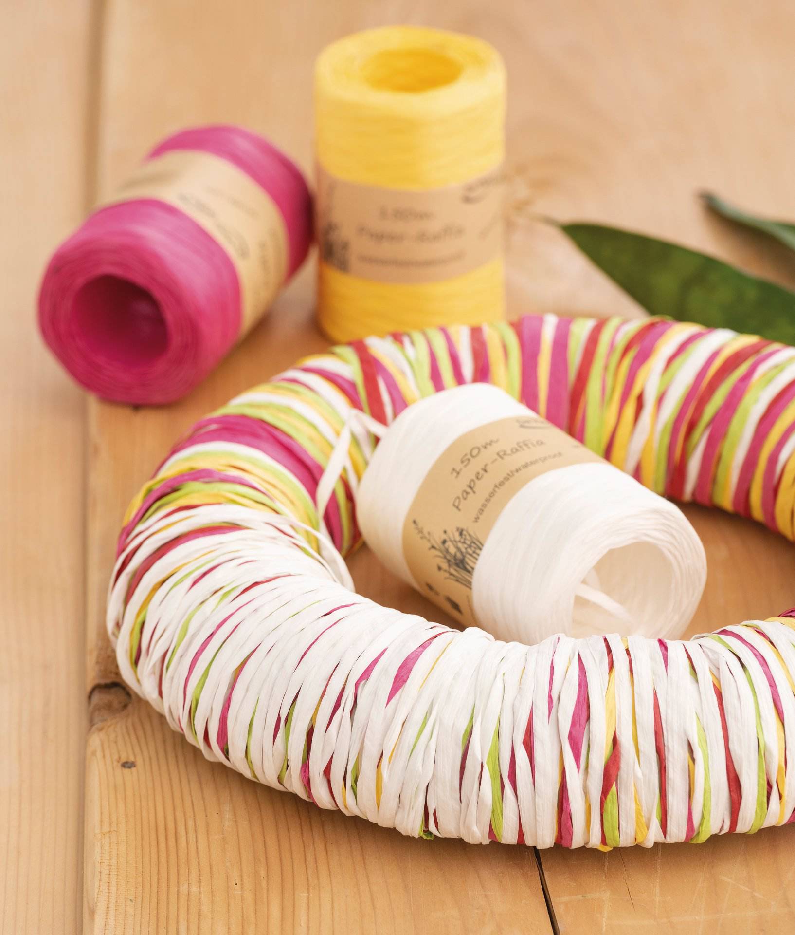 Wasserfestes Papier Raffia in verschiedenen Farben, hergestellt aus nachwachsenden Rohstoffen und biologisch abbaubar.