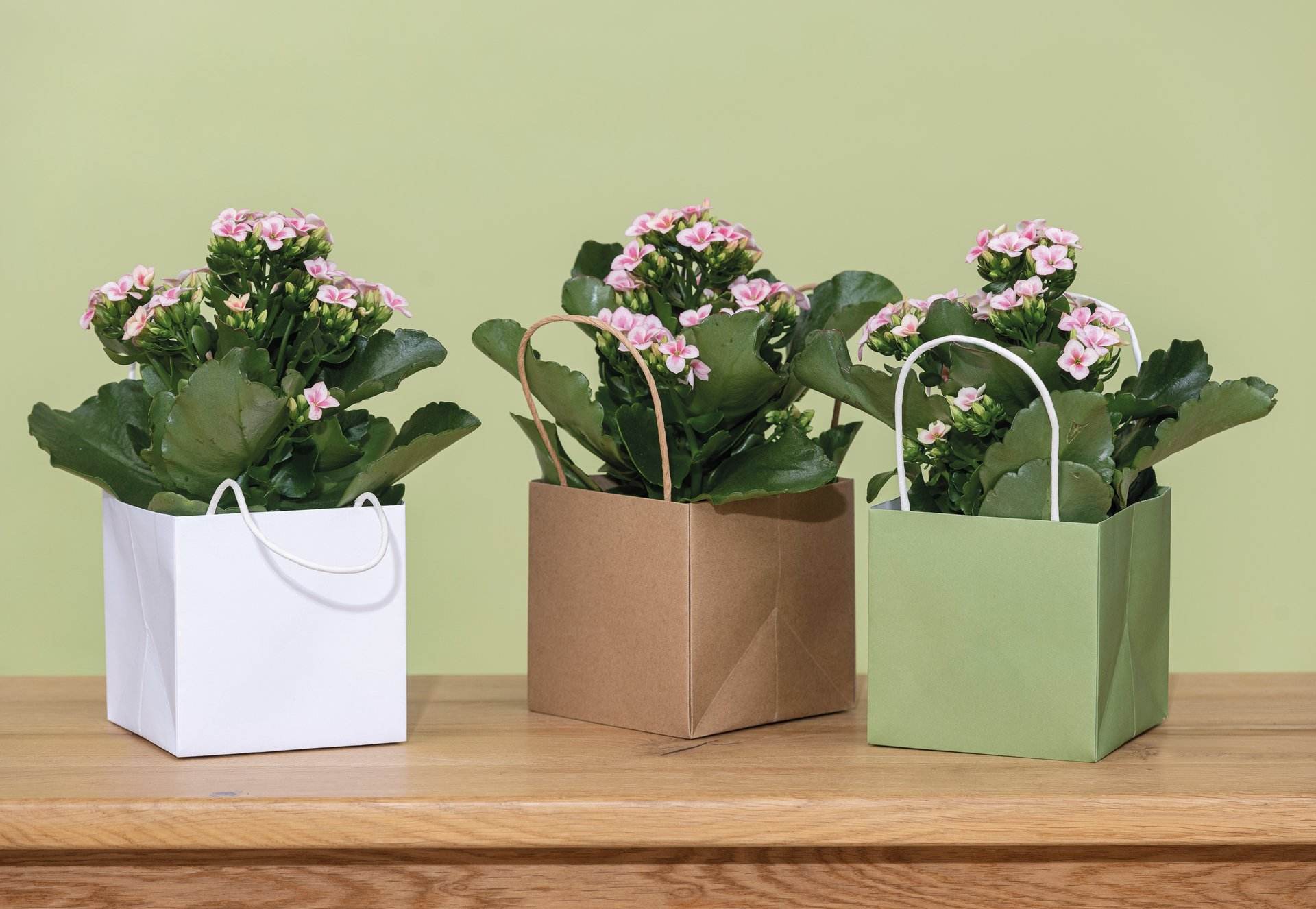 Tasche aus Kraftpapier mit Henkeln. Innen wasserabweisend beschichtet.