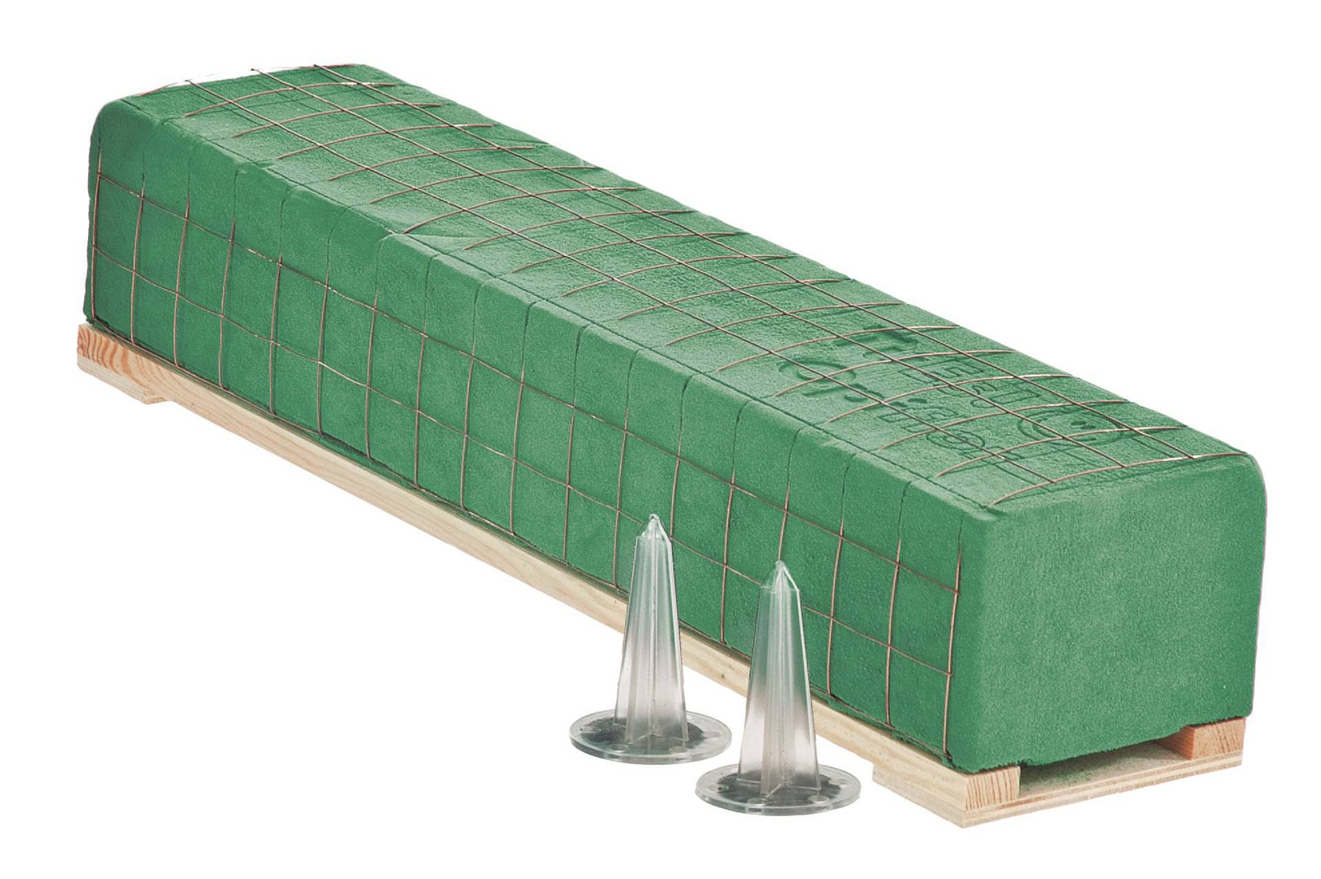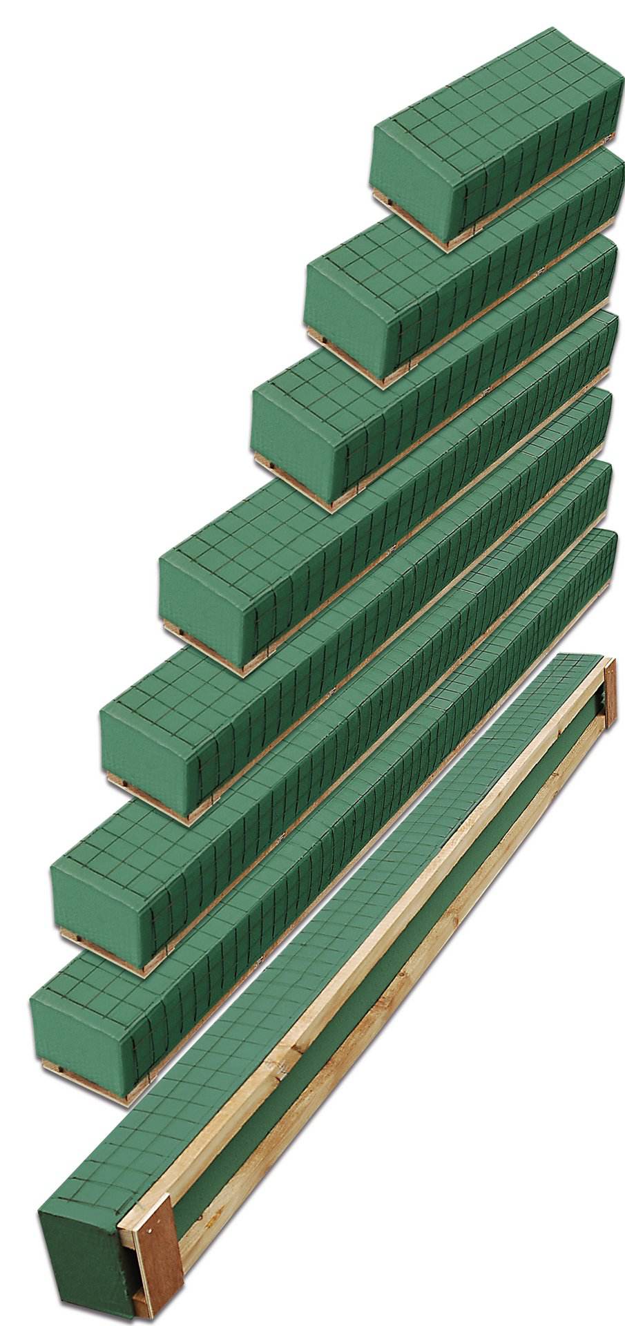 Nass-Steckschaumkranz mit stabiler Holzunterlage, abgeschrägten Steckkanten und Gitterdrahtmantel. Innen-Ø: N° 113951 Ø 26,5 cm, N° 116551 Ø 39 cm, N° 116651 Ø 47 cm, N° 116751 Ø 56 cm.