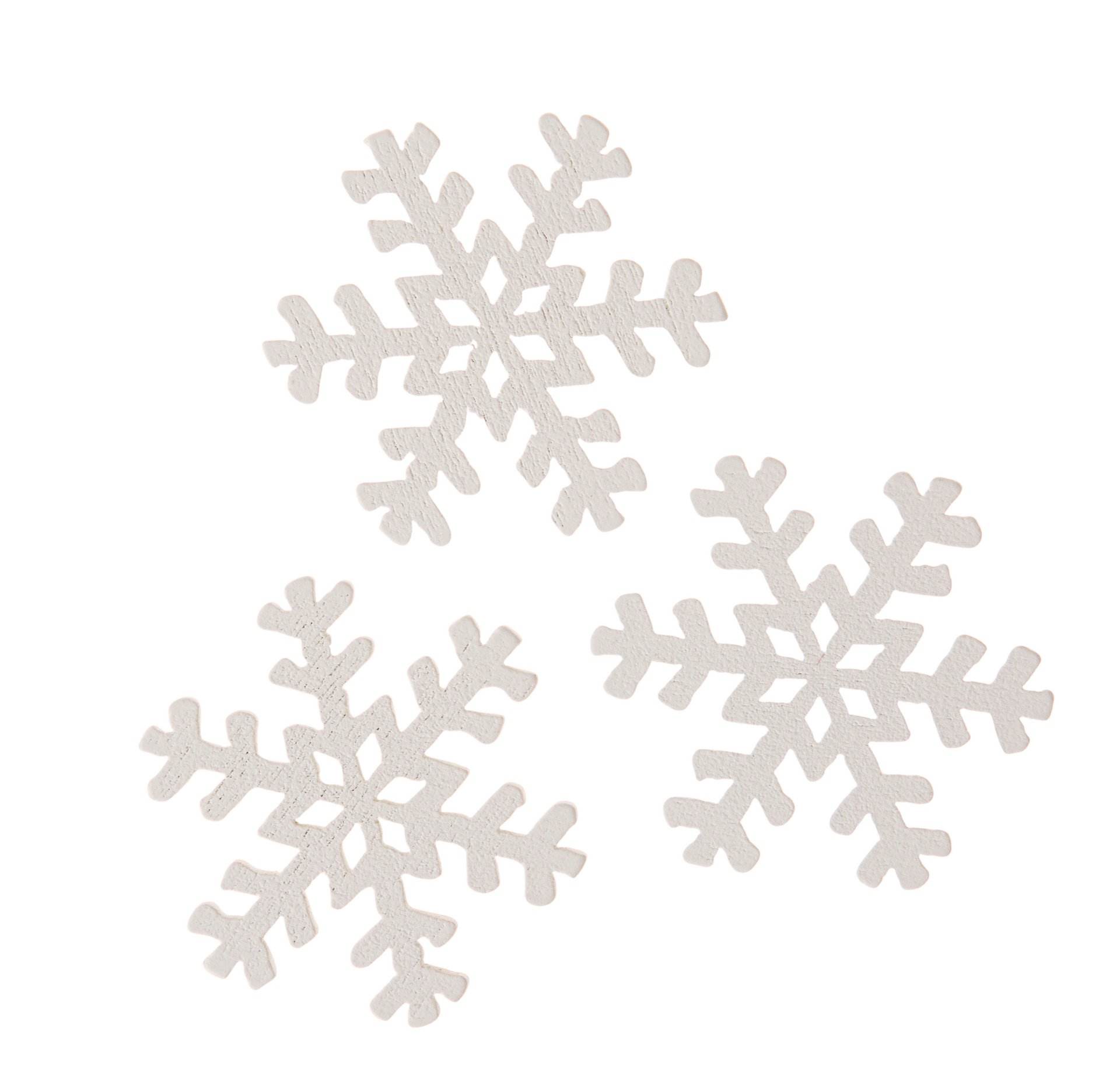 Schneeflocken aus Holz – ideal zum Dekorieren. 60 Stück pro Beutel.