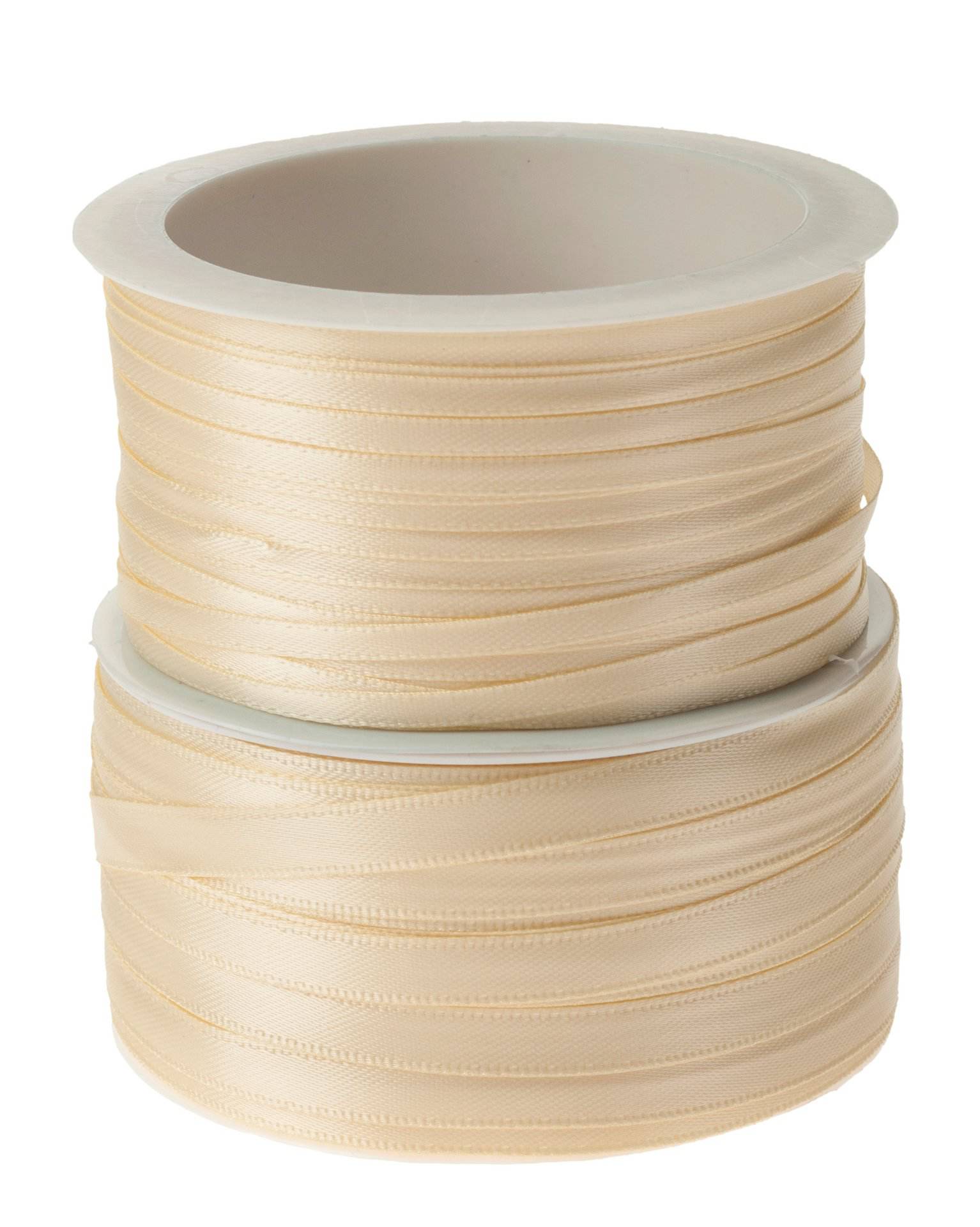 Zartes Organzaband mit gewebter Kante. Größen: 6 mm x 50 m, 15 mm x 50 m und 25 mm x 50 m.