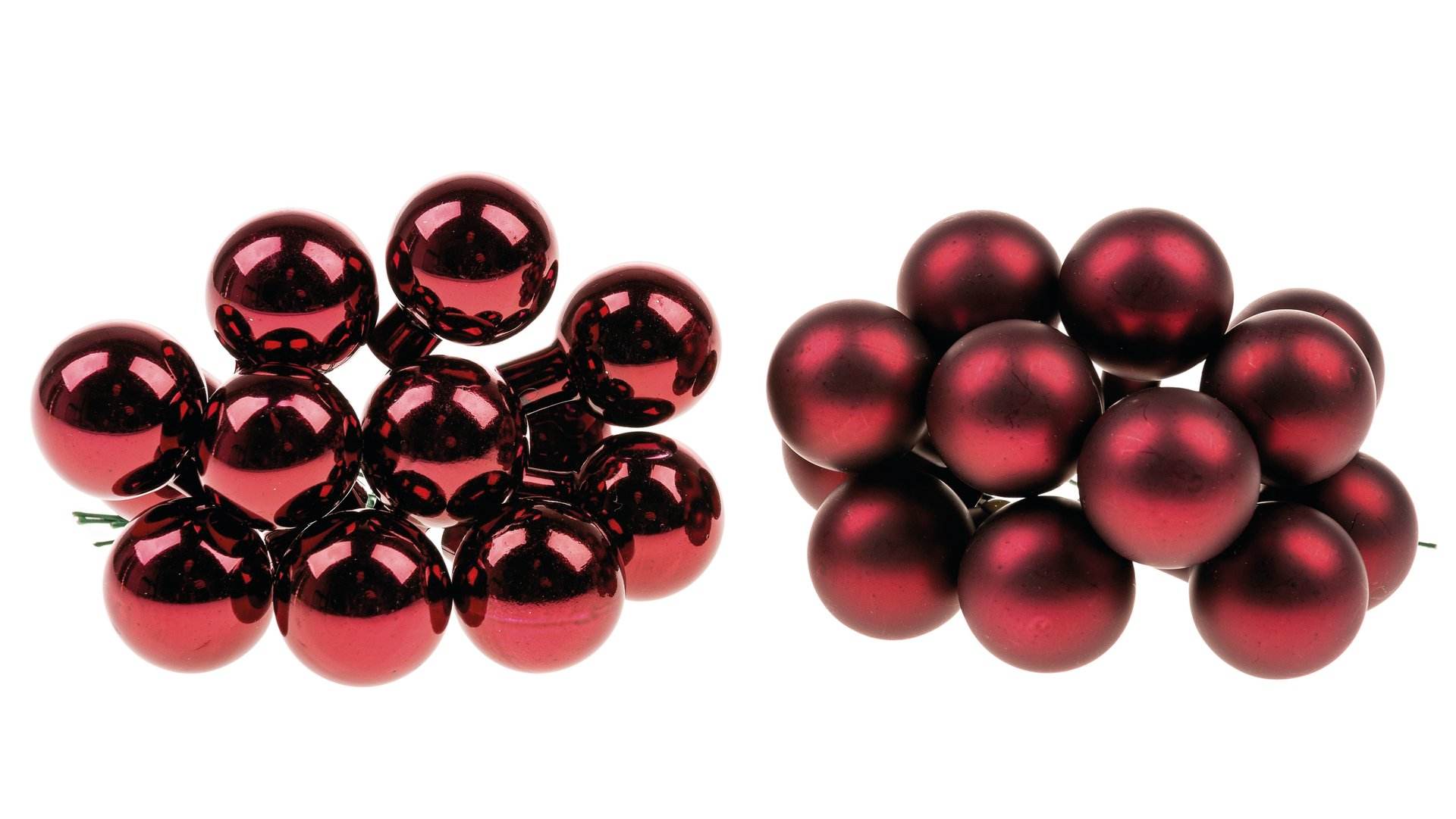 Glänzende und matte Spiegelbeeren im Mix – aus hochwertigem Glas. 144 Stück pro Box.