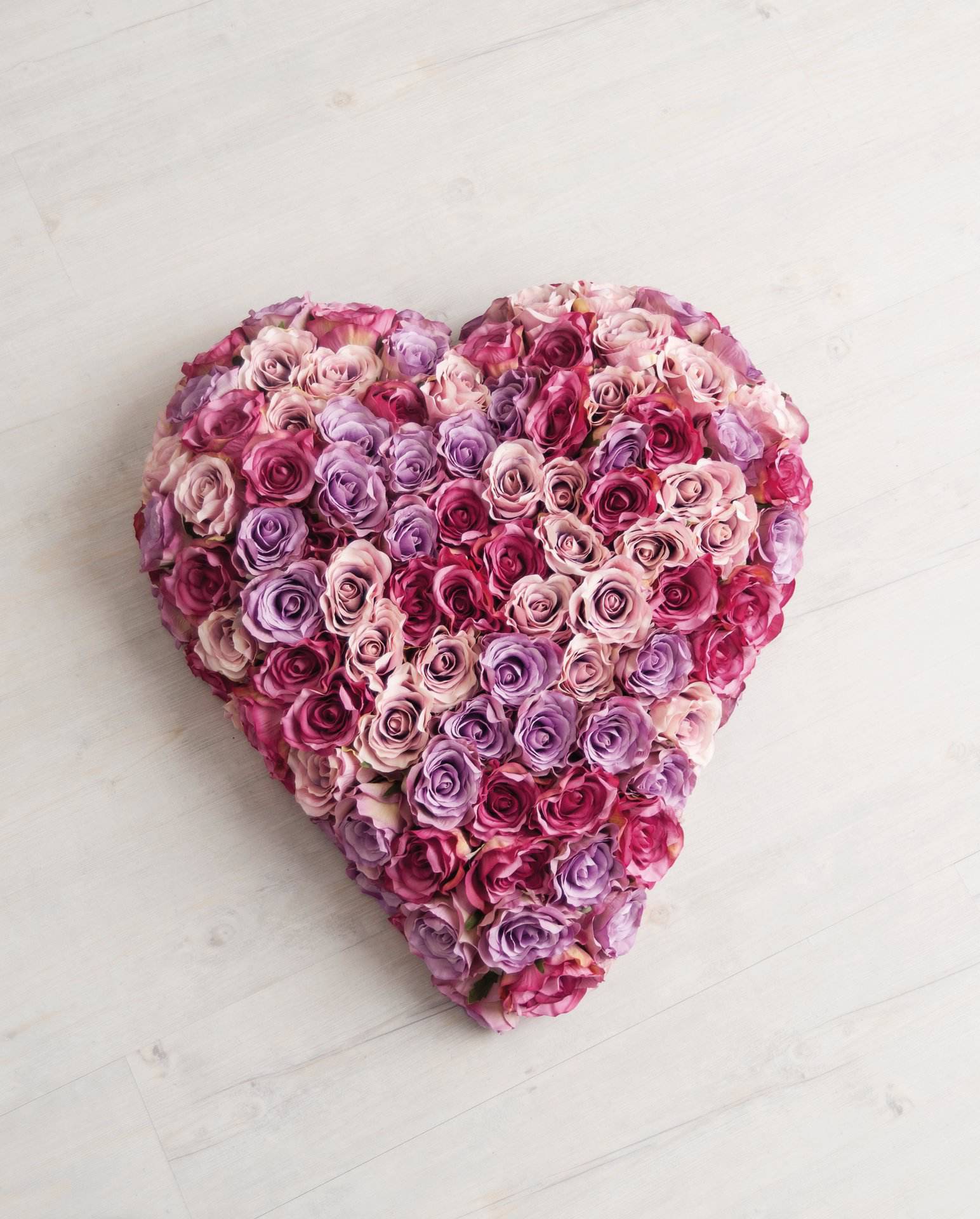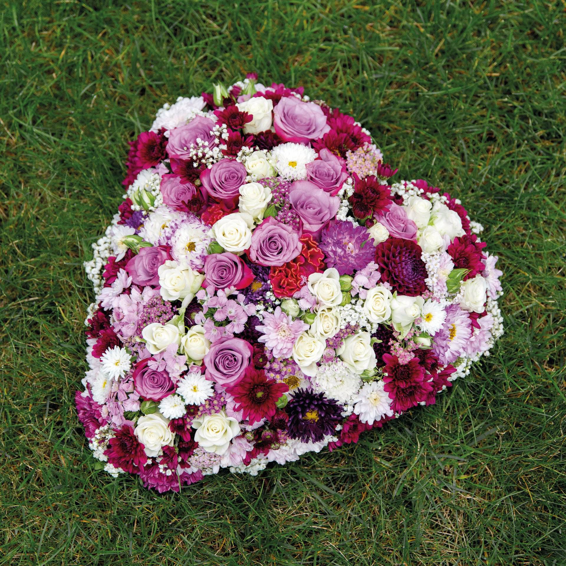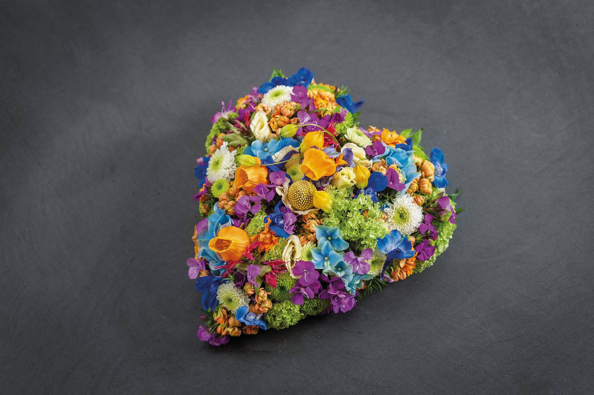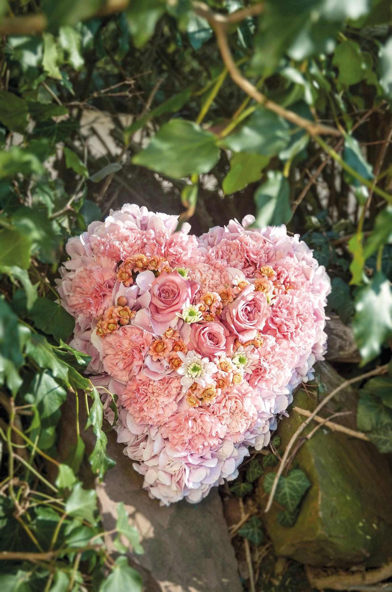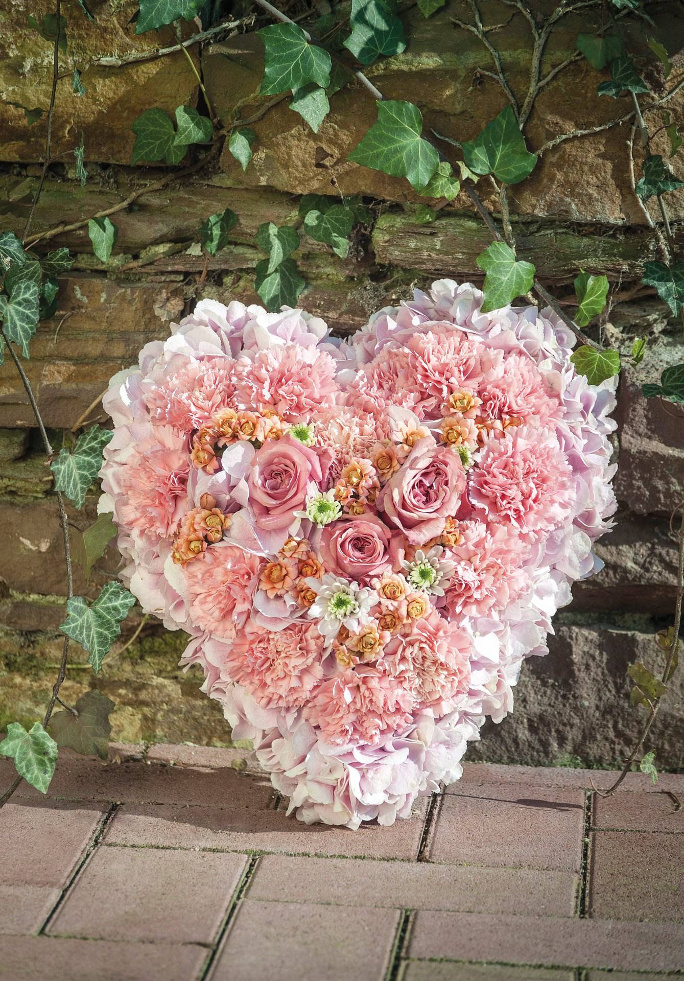 Nass-Steckschaumherz auf stabiler, verrottbarer Holzunterlage.