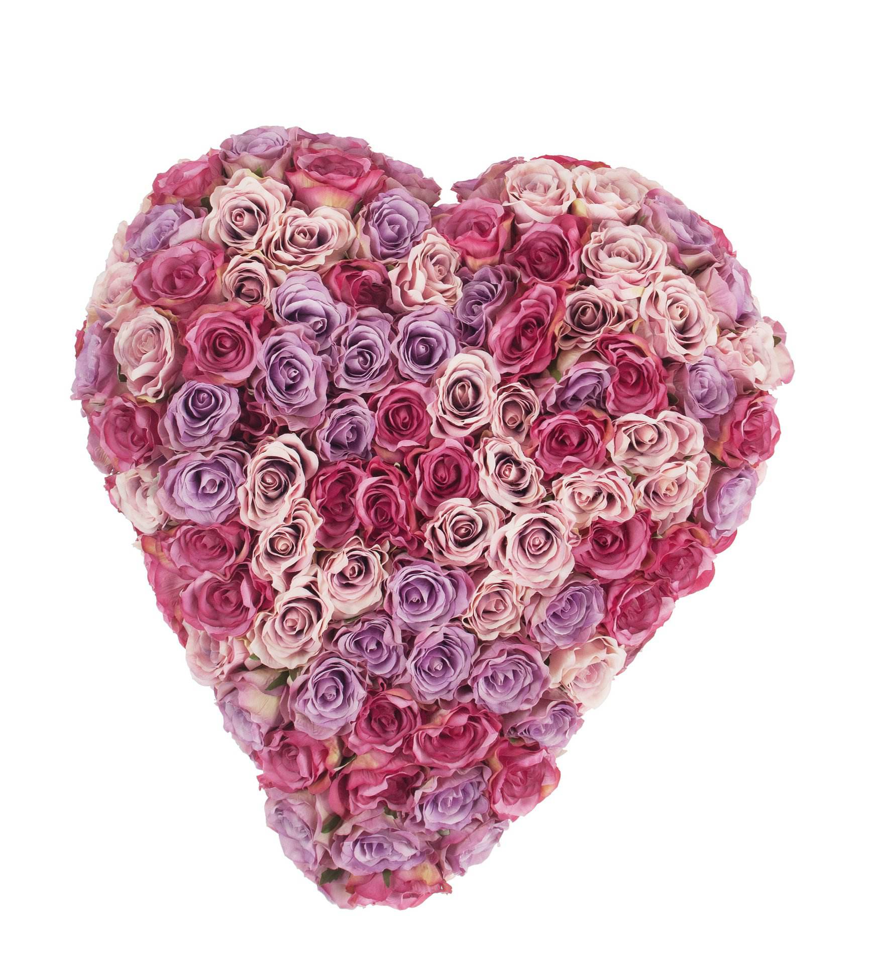 Geschwungenes Nass-Steckschaumherz auf stabiler, verrottbarer Holzunterlage, zum Legen.