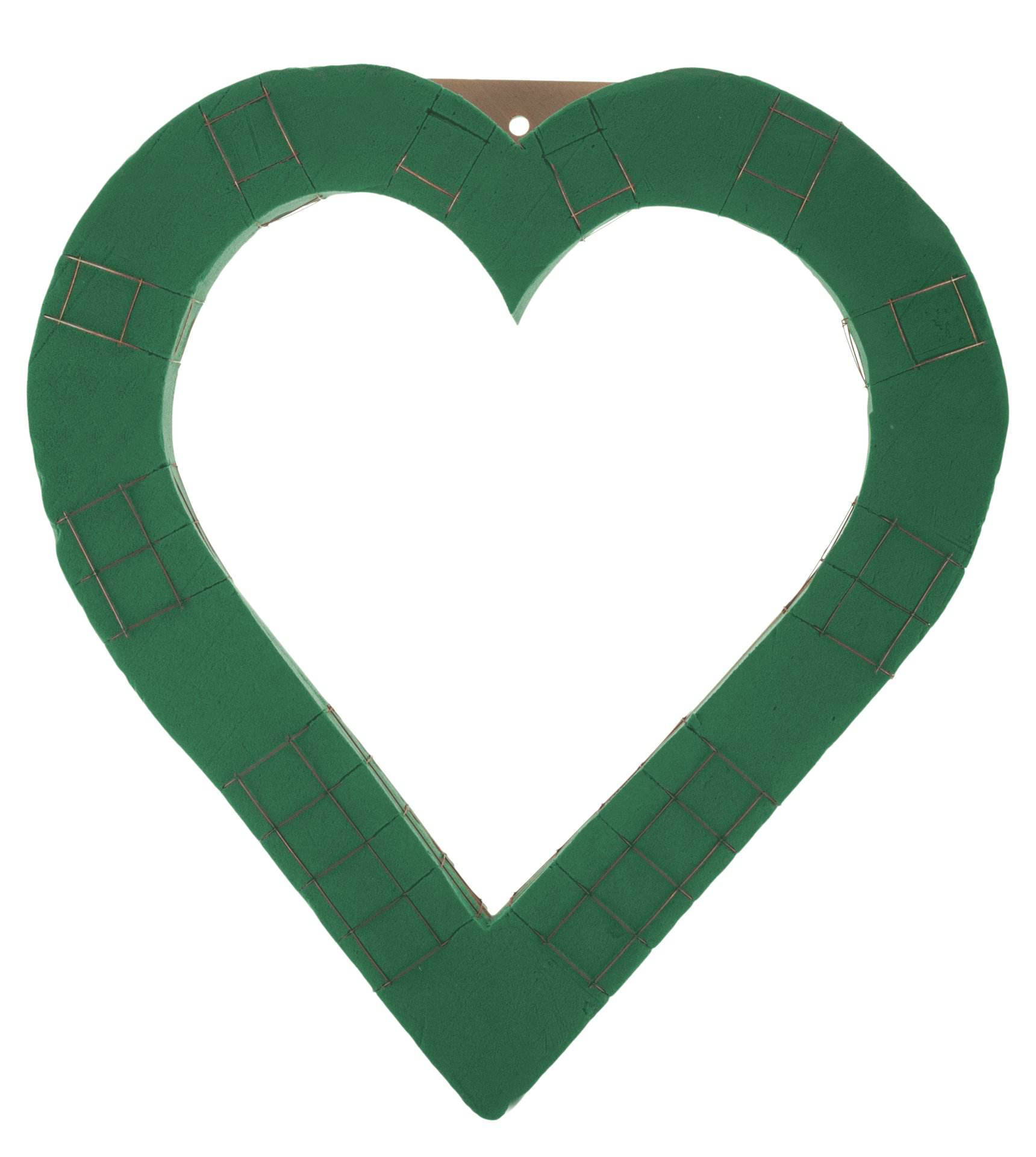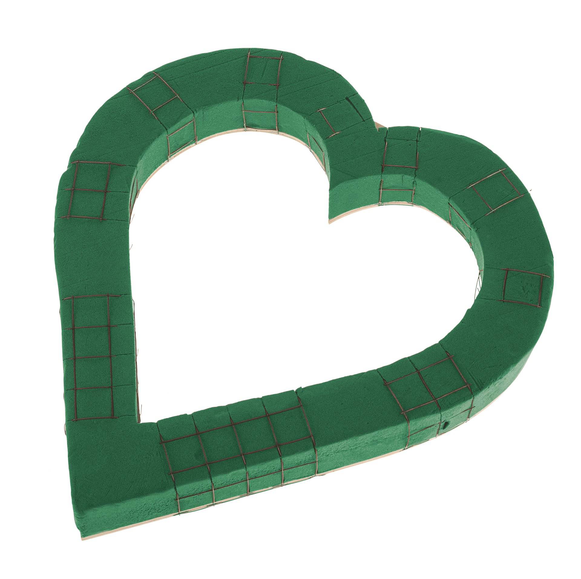 Offenes Nass-Steckschaumherz mit Gitterdraht und stabiler Holzunterlage, zum Legen. Steckschaumbreite ca. 4,5 cm.