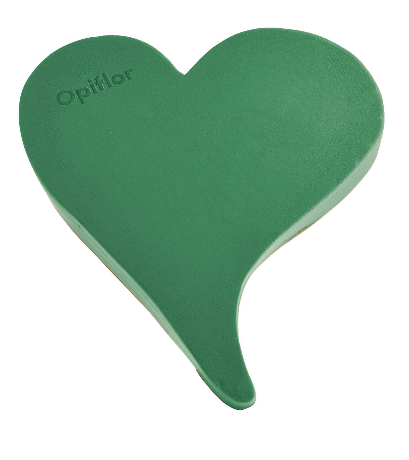 Geschwungenes Nass-Steckschaumherz auf stabiler, verrottbarer Holzunterlage, zum Legen.