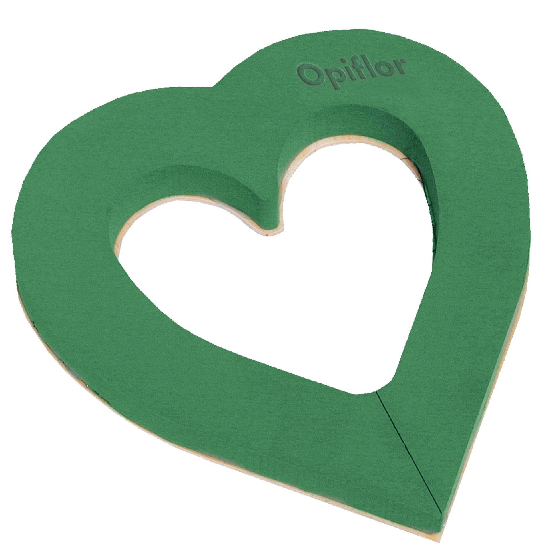 Offenes Nass-Steckschaumherz auf stabiler, verrottbarer Holzunterlage, zum Legen. Steckschaumbreite 7 cm.