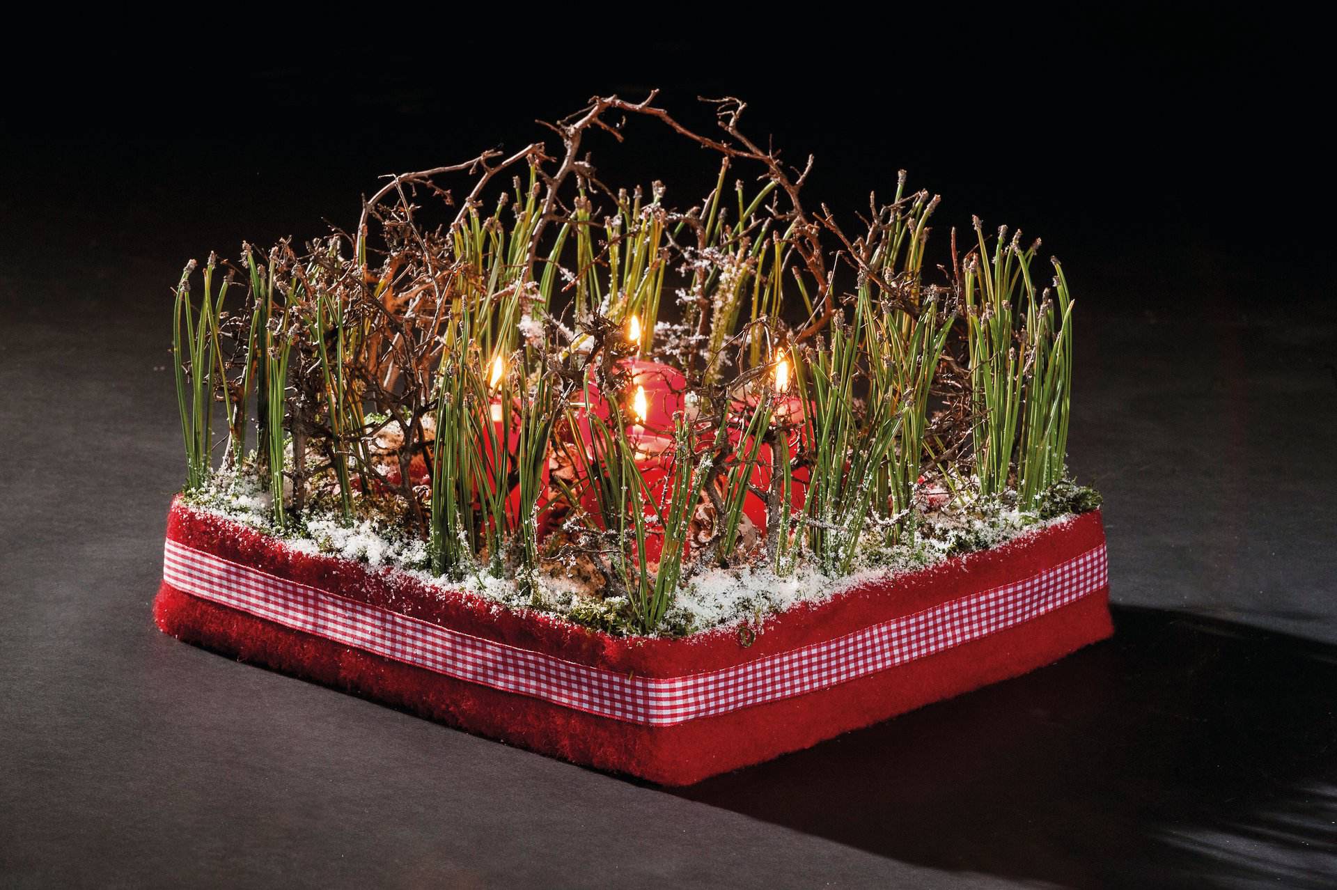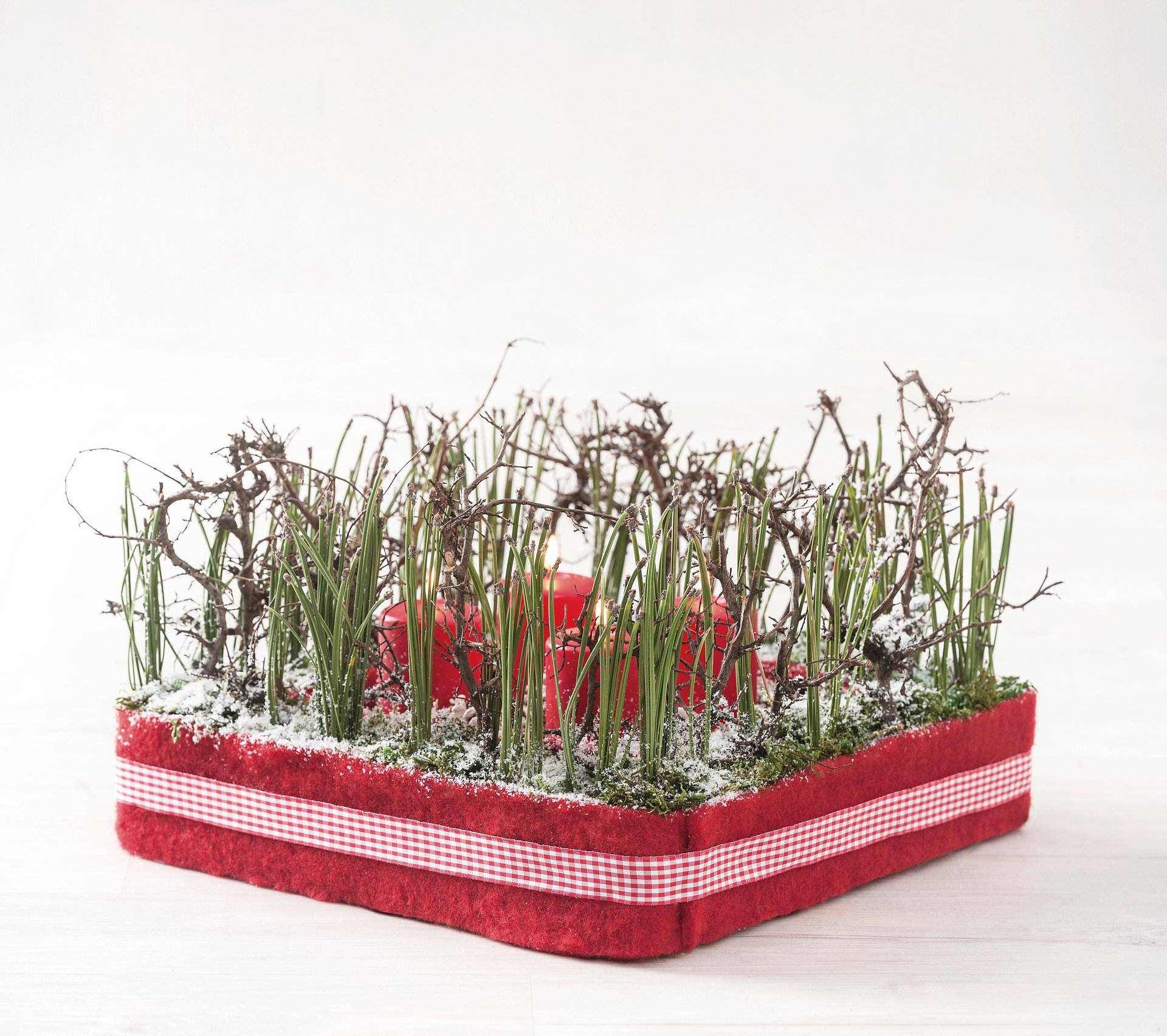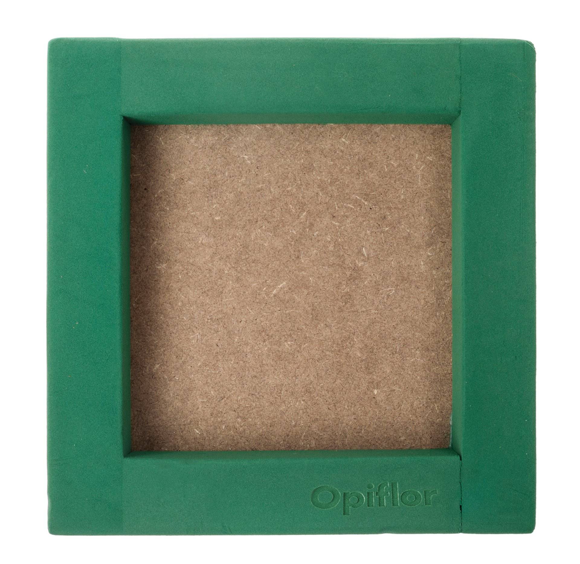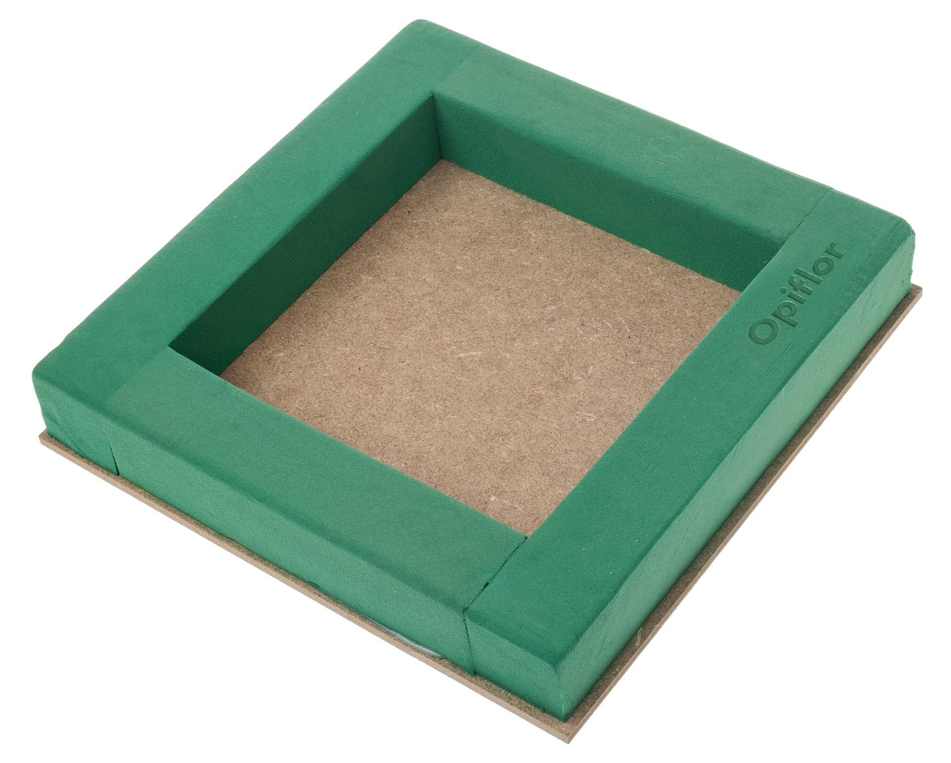 Quadratischer Nass-Steckschaum mit einer durchgehenden, stabilen Holzunterlage. Größen: außen 35 x 35 cm, innen 24 x 24 cm, Steckschaumhöhe 5 cm.
