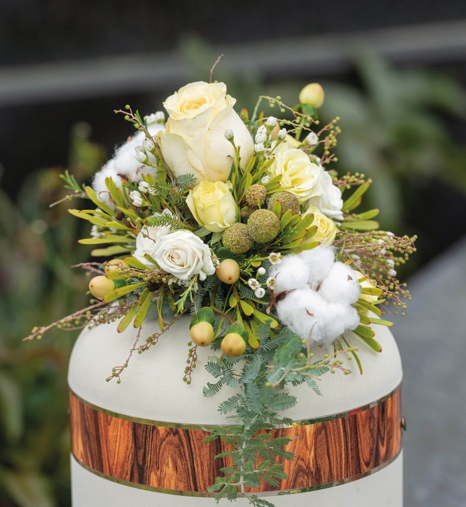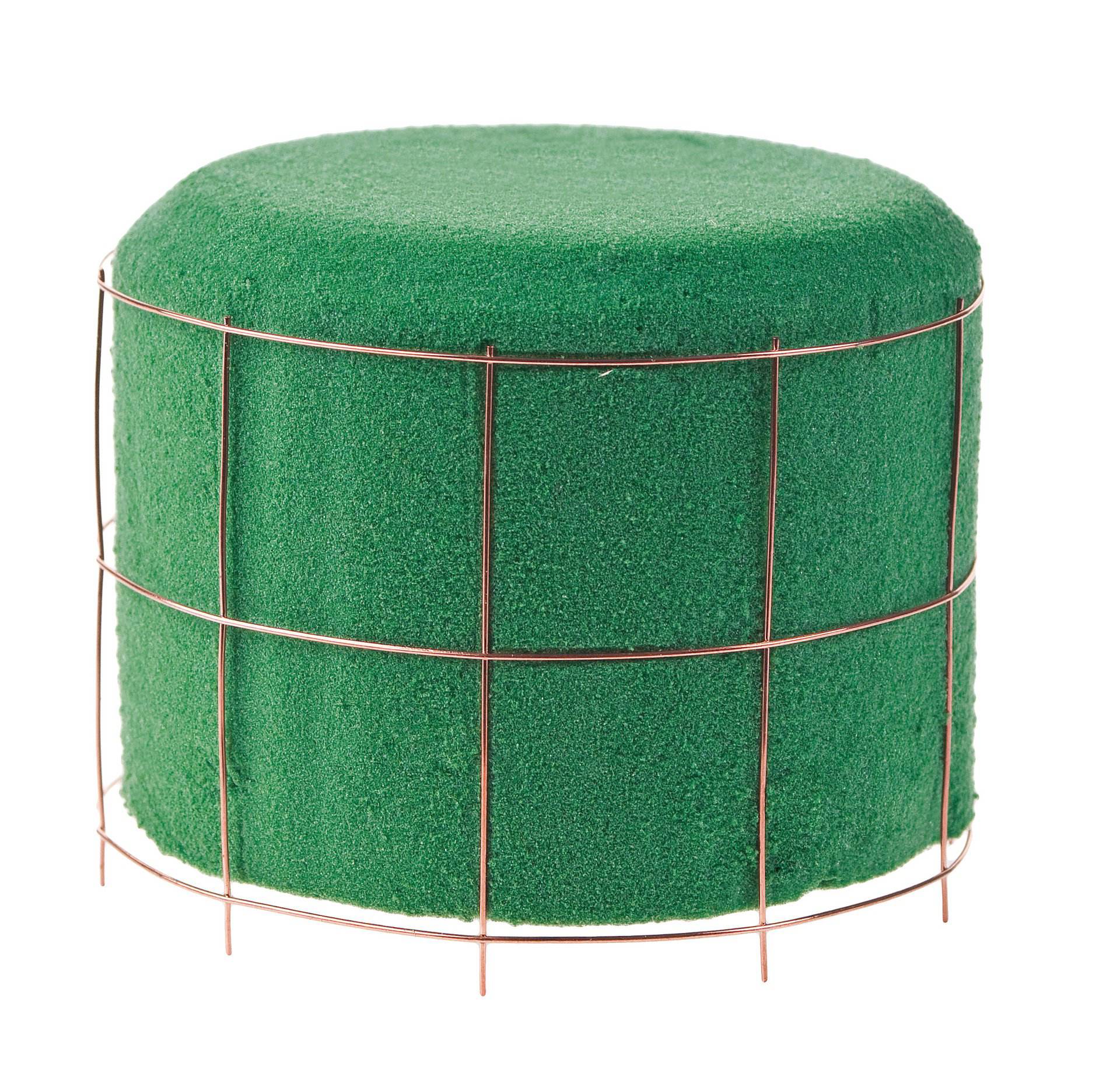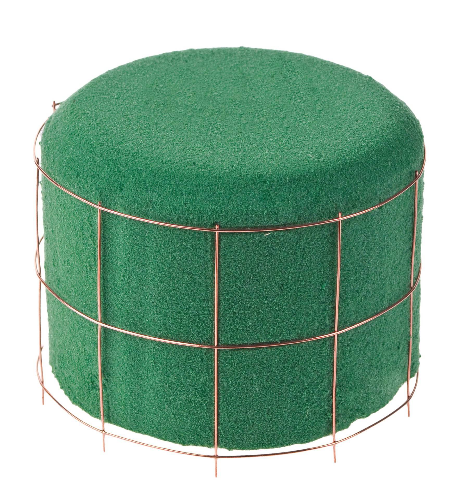 Steckschaumzylinder mit Gitterdraht für Urnendekorationen.