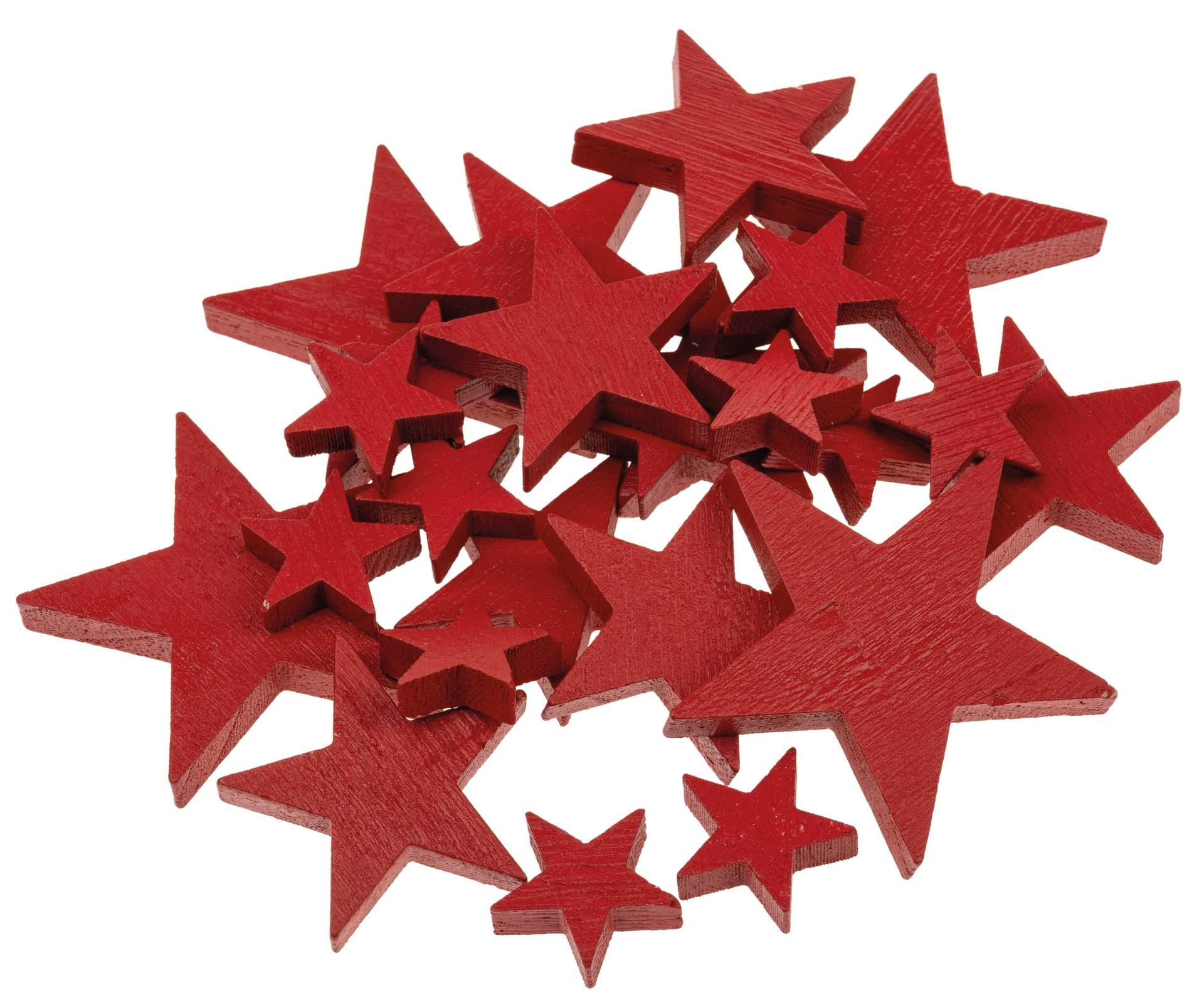 Sterne aus Holz in unterschiedlichen Größen – ideal zum Dekorieren. 3fach sortiert. 24 Stück im Beutel.