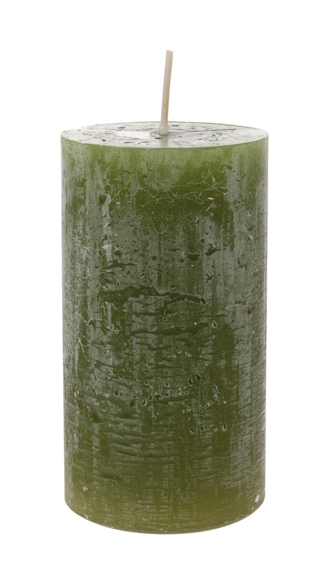 Durchgefärbte Stumpenkerze mit strukturierter Oberfläche.Brenndauer: Ø 6 x 8 cm: ca. 25 Std., Ø 6 x 11 cm: ca. 40 Std., Ø 7 x 14 cm: ca. 69 Std.