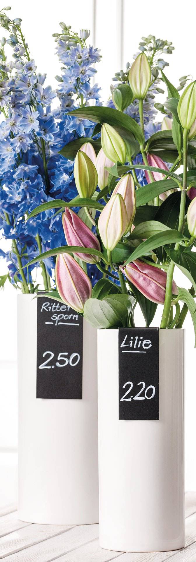 Kunststofftafel zum Hängen an Vasenränder oder andere geeignete Kanten mit einer maximalen Tiefe von 1,8 cm. Materialstärke 3 mm. Die Tafel kann mit Tafelkreide oder Kreidestiften beschriftet werden.