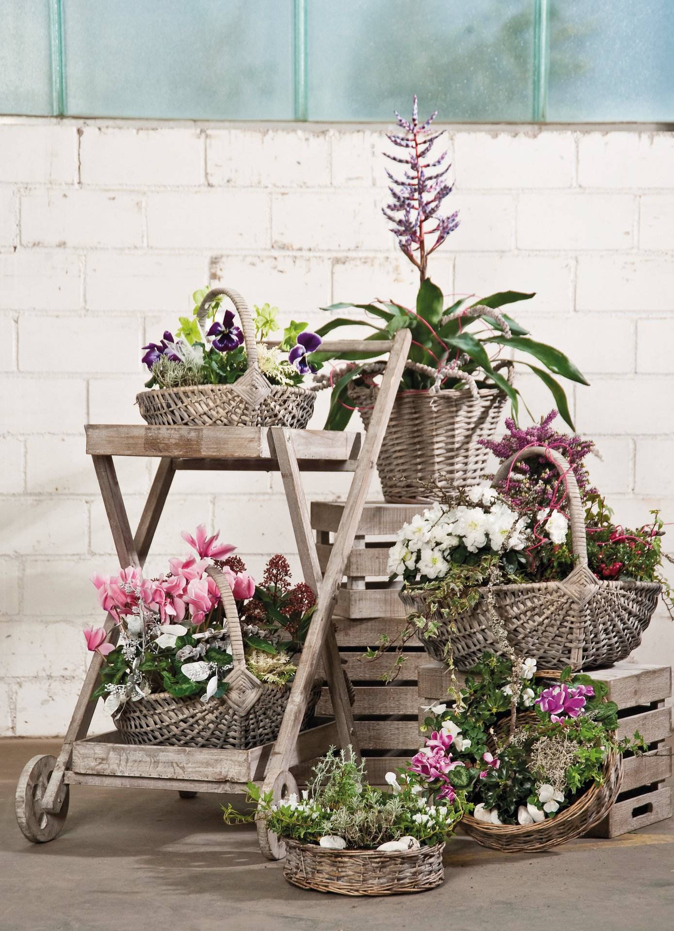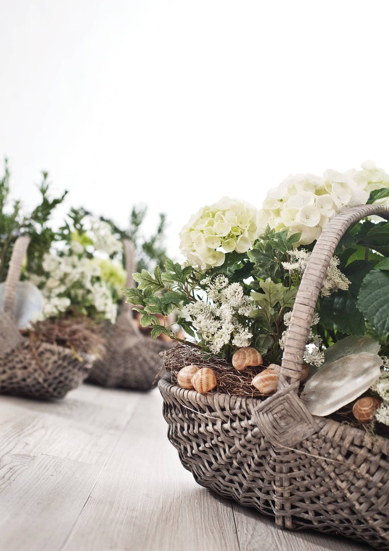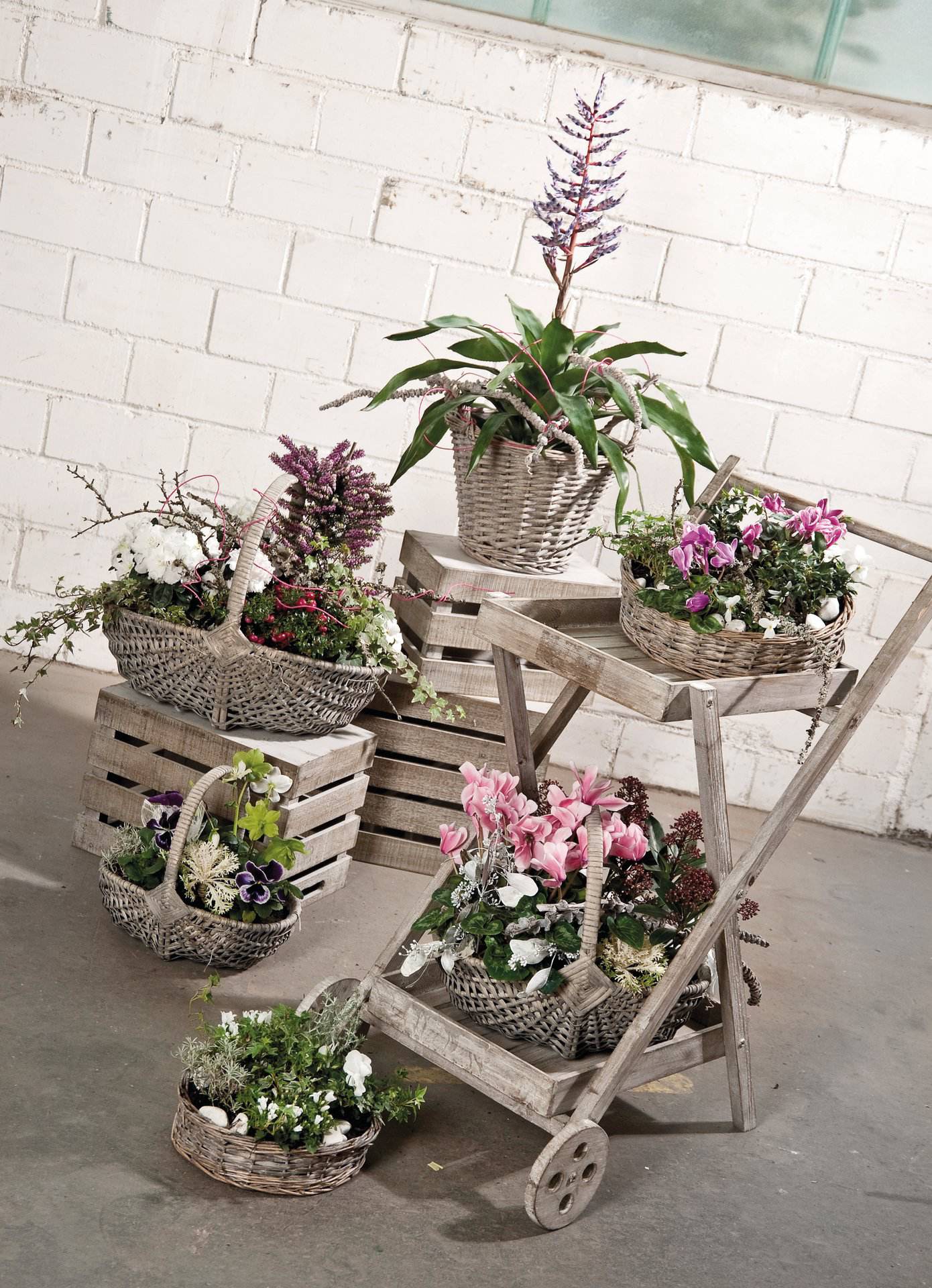 Pflanzring aus weiß gekalkter Rinde. Innen foliert. 2er Set. Größen: Ø 39 x 9 cm, Ø 45 x 10 cm. Innendurchmesser der beiden Körbe: 14cm , 18,5cm.