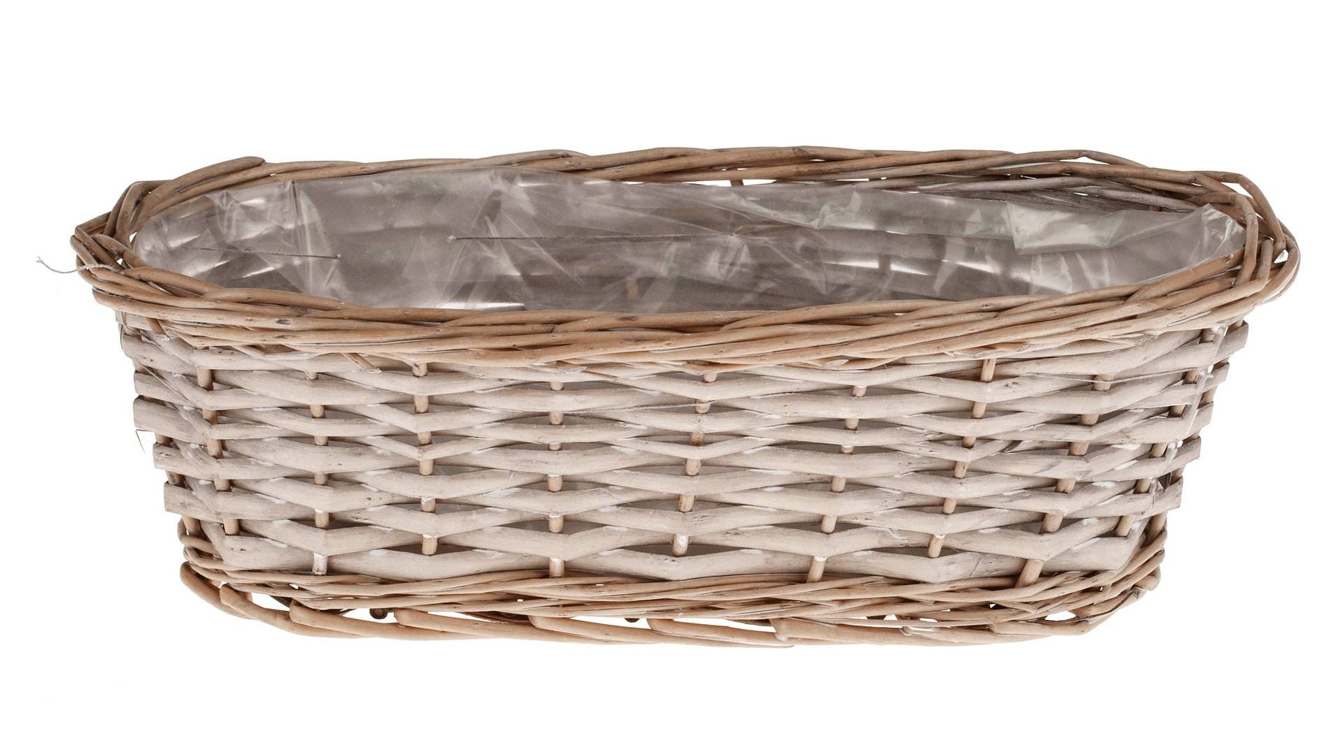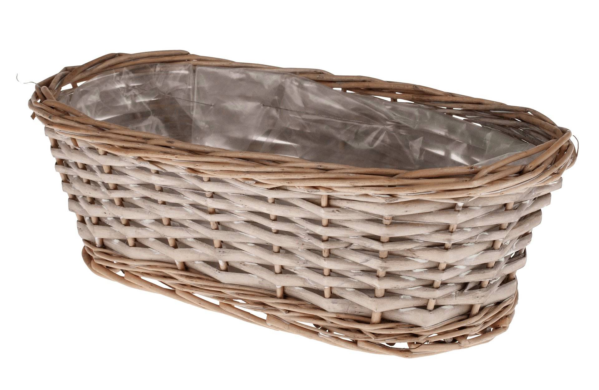 Ovaler Pflanzkorb aus ungeschälter Weide. Innen foliert.