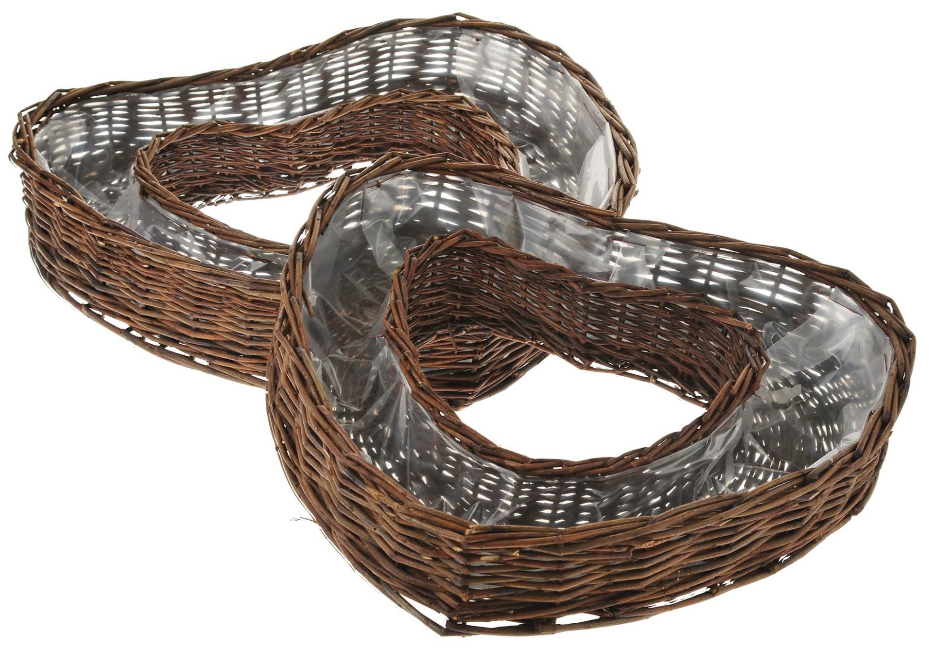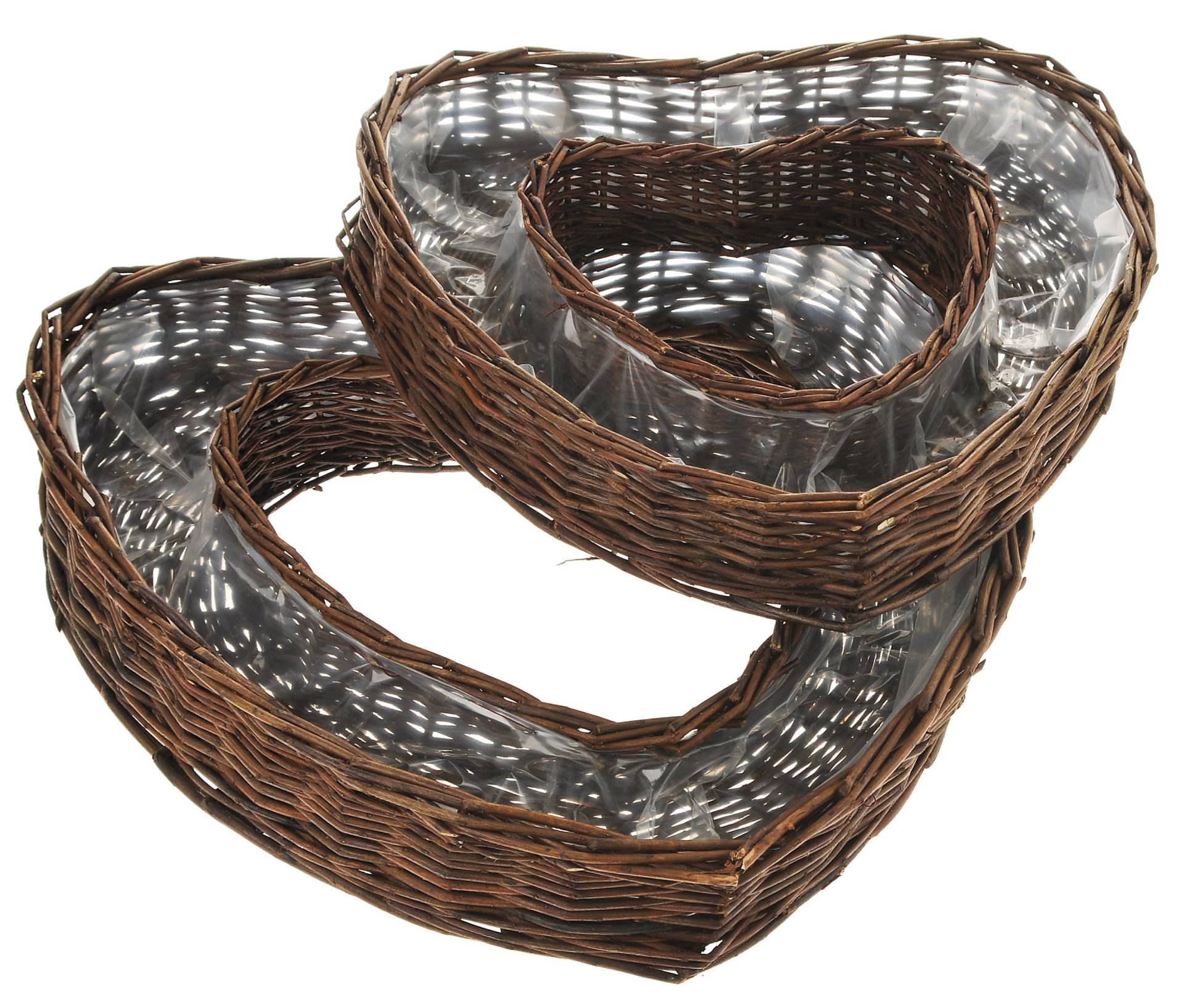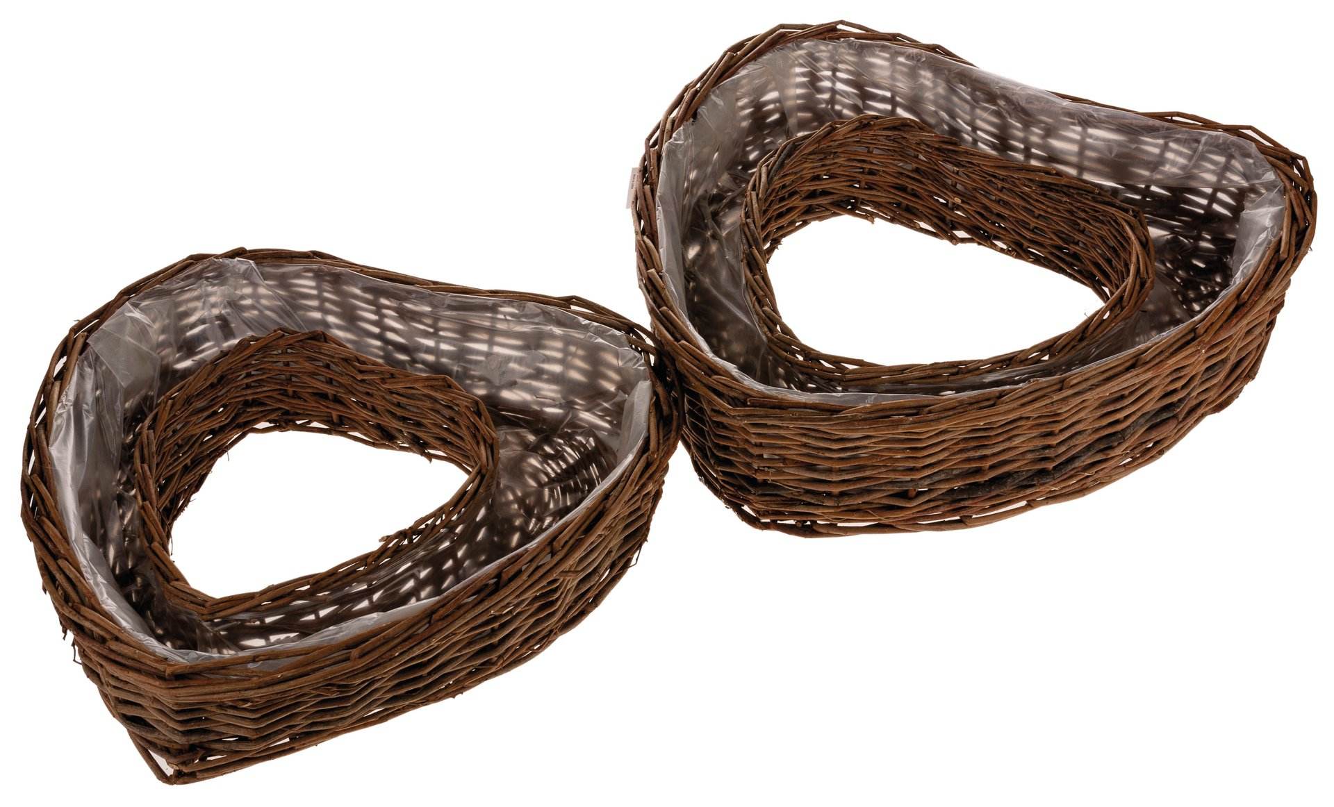 Große Weidenkorbherzen, stabil gearbeitet. Innen foliert. 2er Set. Farbe: natur.