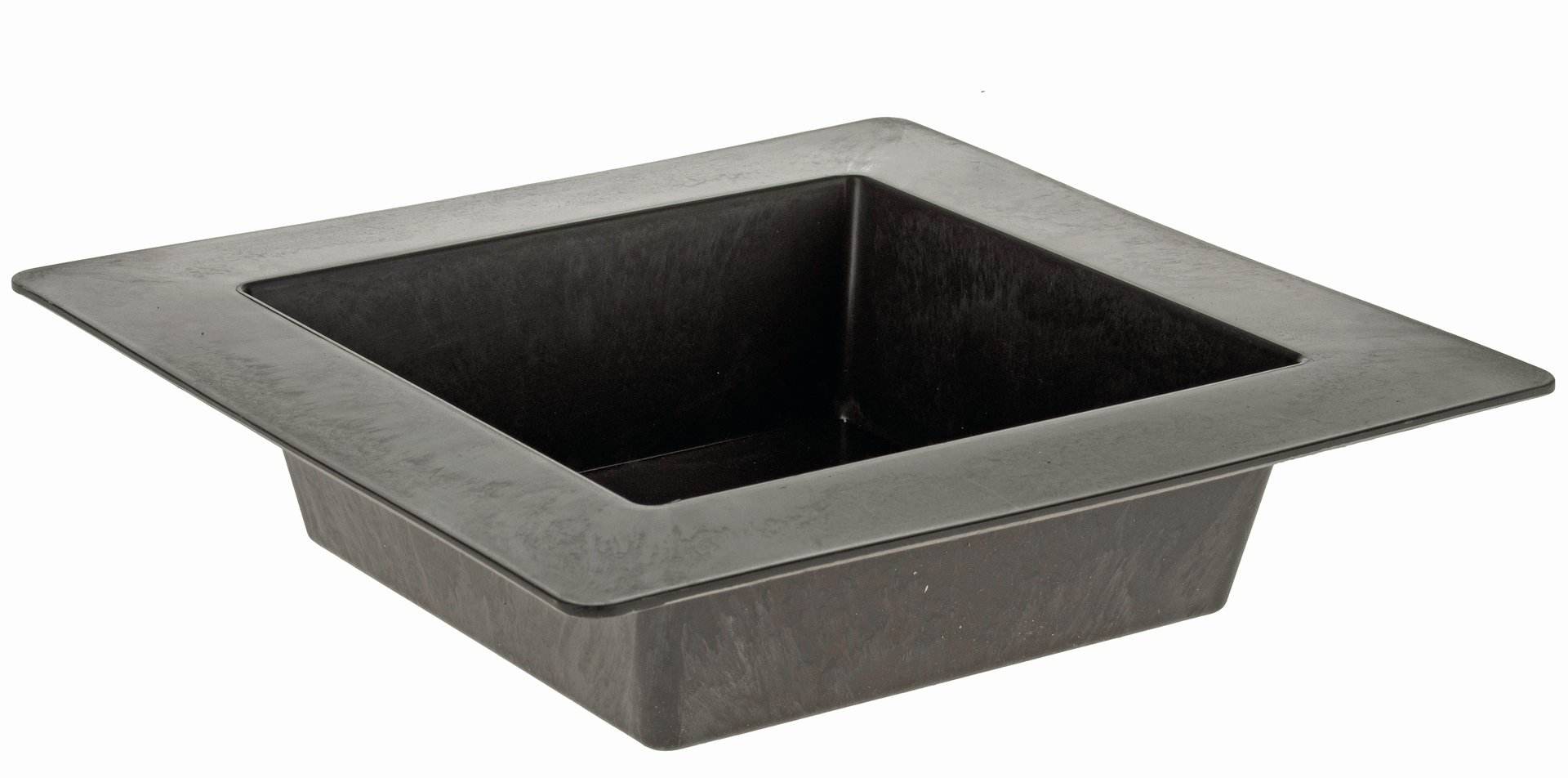 Récipient en plastique de forme carrée, à l'aspect pierre, avec un pourtour de 4 cm de large. Dim. intérieures : N° 203993 : 12 x 12 x 12 x 5 cm, N° 203996 : 17 x 17 x 5,5 cm. Couleur : anthracite.