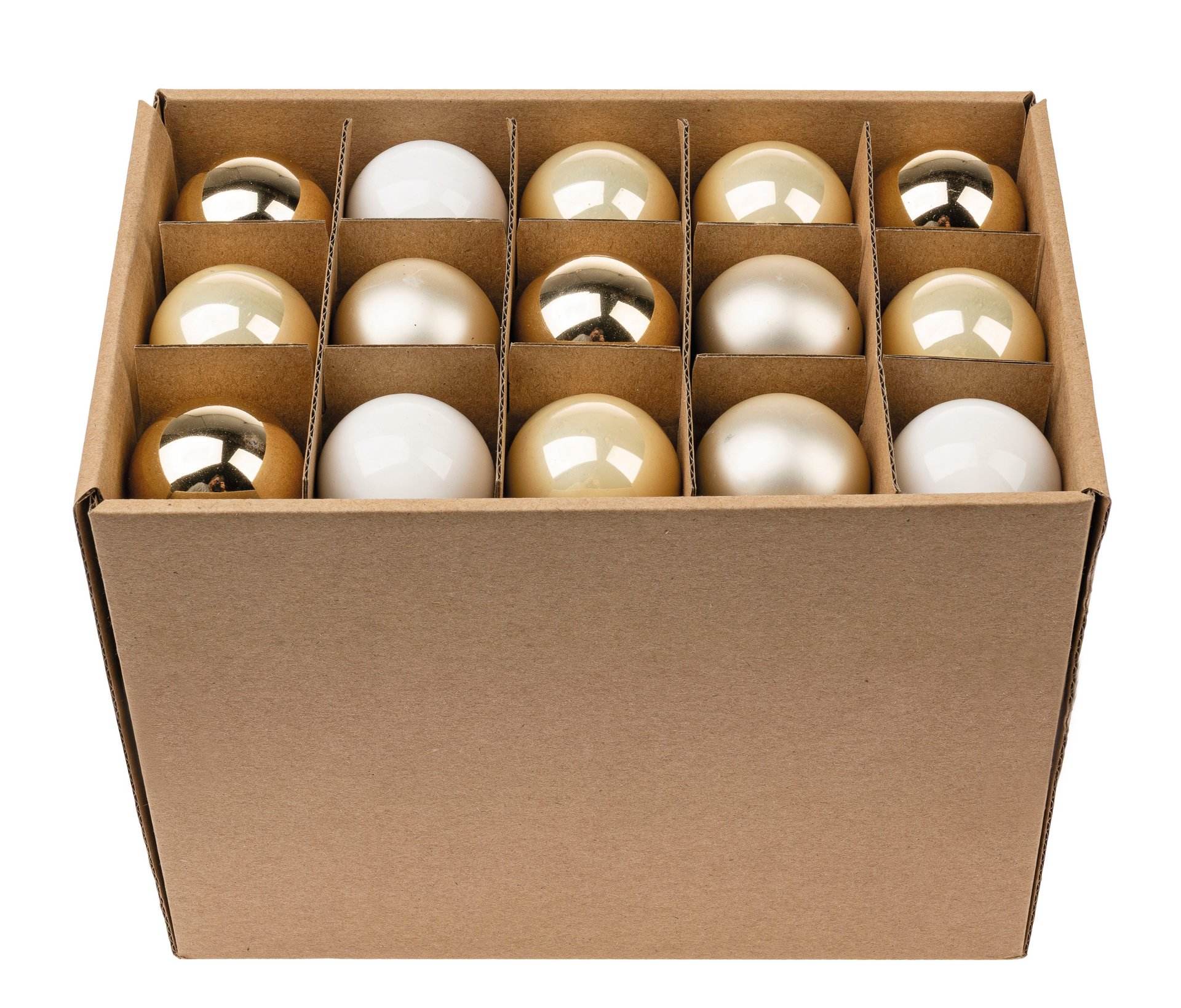 Boules de Noël brillantes et mates en verre haut de gamme. 60 pièces par boîte.