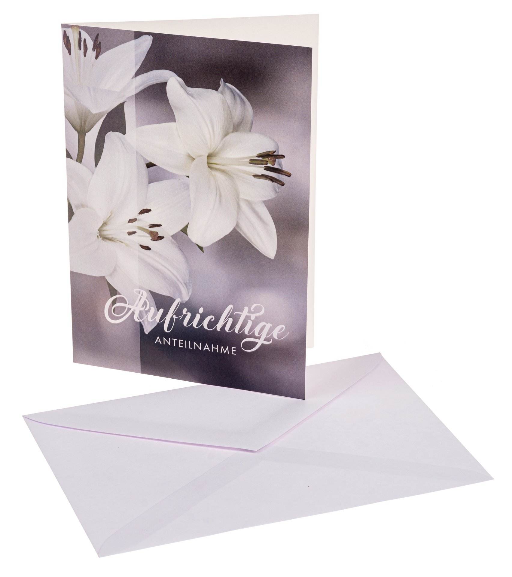 Cartes pliantes de condoléances dignes avec enveloppe blanche dans un emballage cellophane fermé. Assortiment de 4 modèles, 10 cartes de chaque. ( en allemand uniquement )