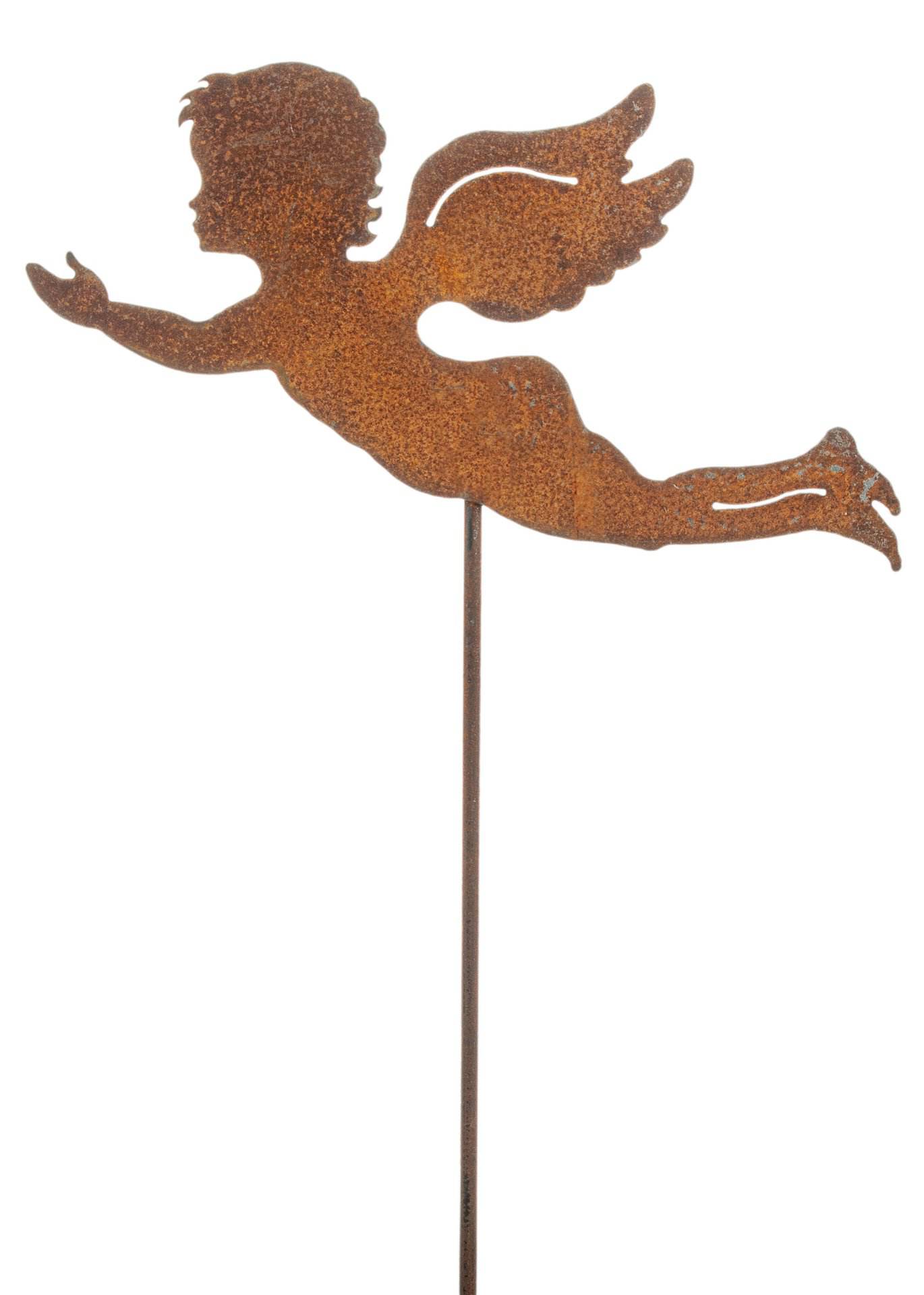 Ange sur pique en fil de fer, aspect rouille. Longueur totale : 67 cm.