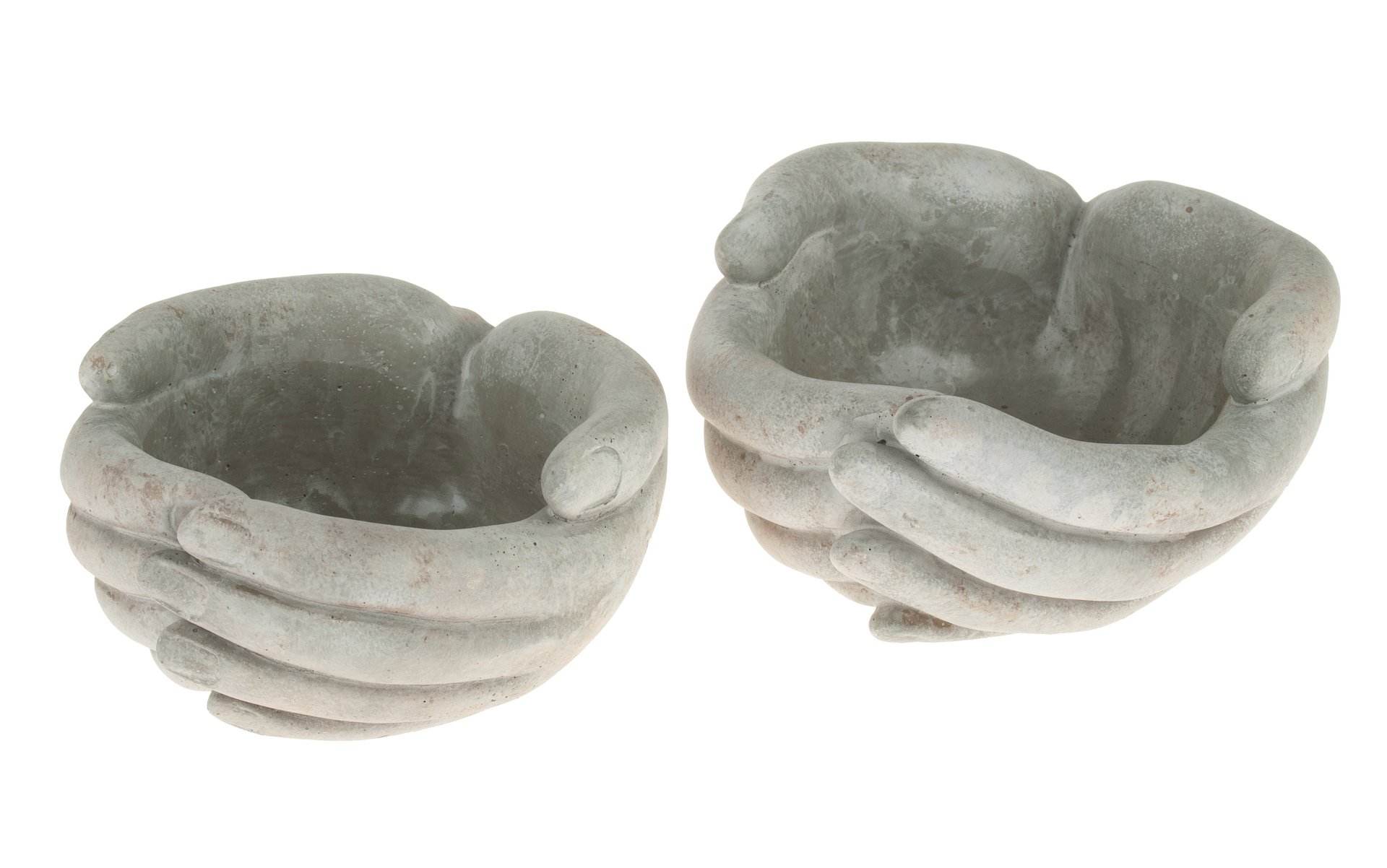 Mains en ciment réunies pour former une coupe. Avec emplacement pour un petit arrangement ou une bougie funéraire.