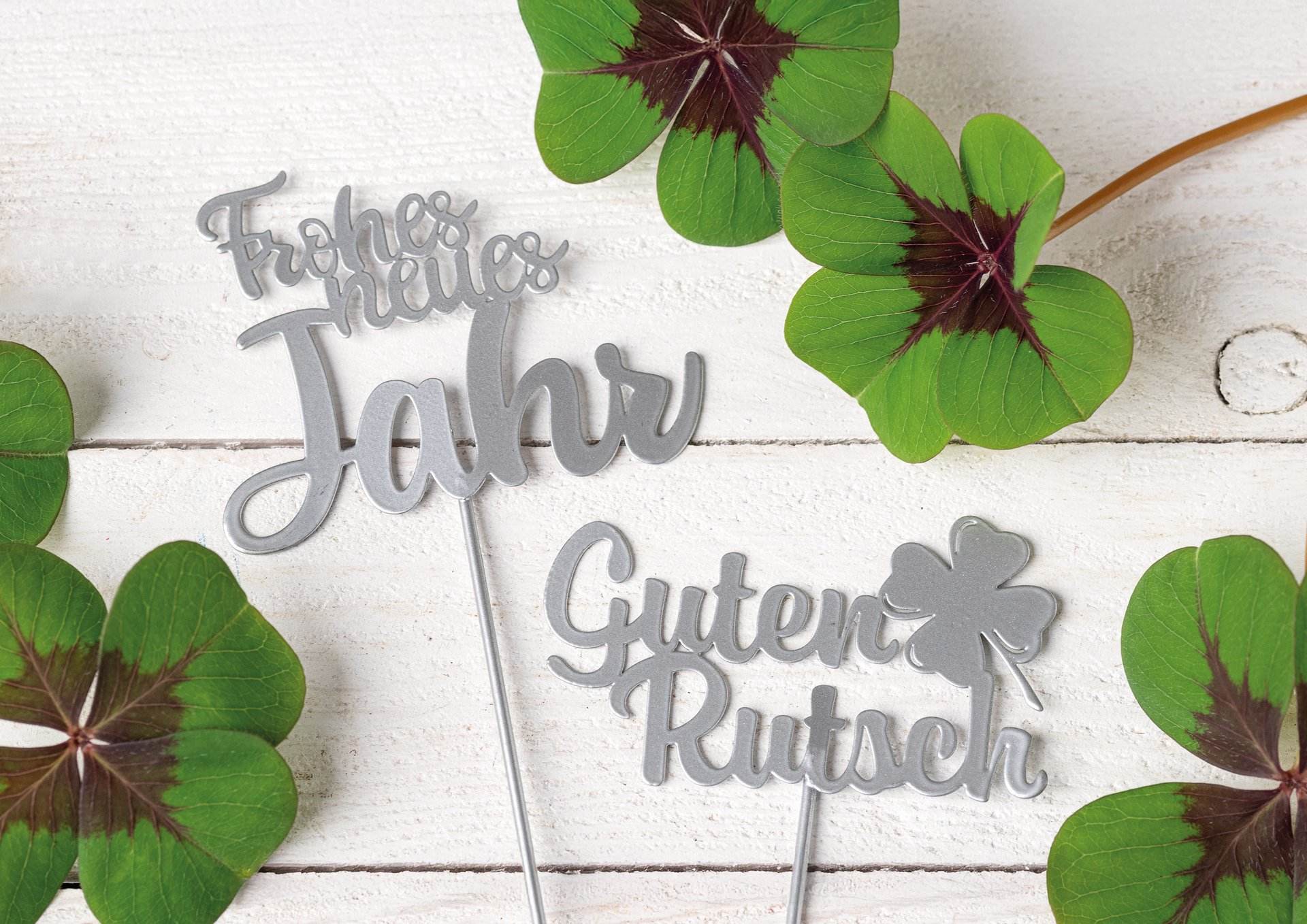 Fiche métallique décorative avec l'inscription « Guten Rutsch » en allemand.