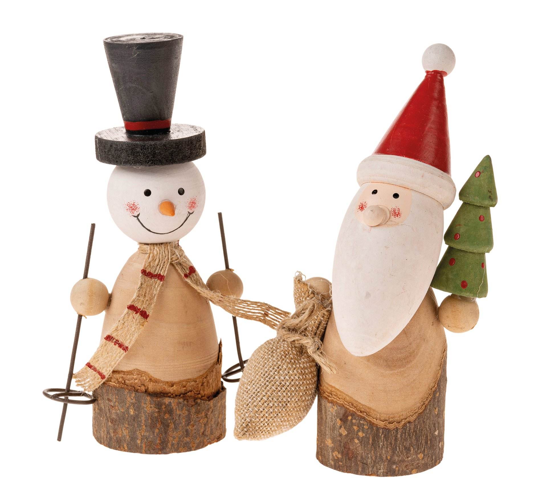 Figurines en bois à poser. Lot de 2 : bonhomme de neige et Père Noël.