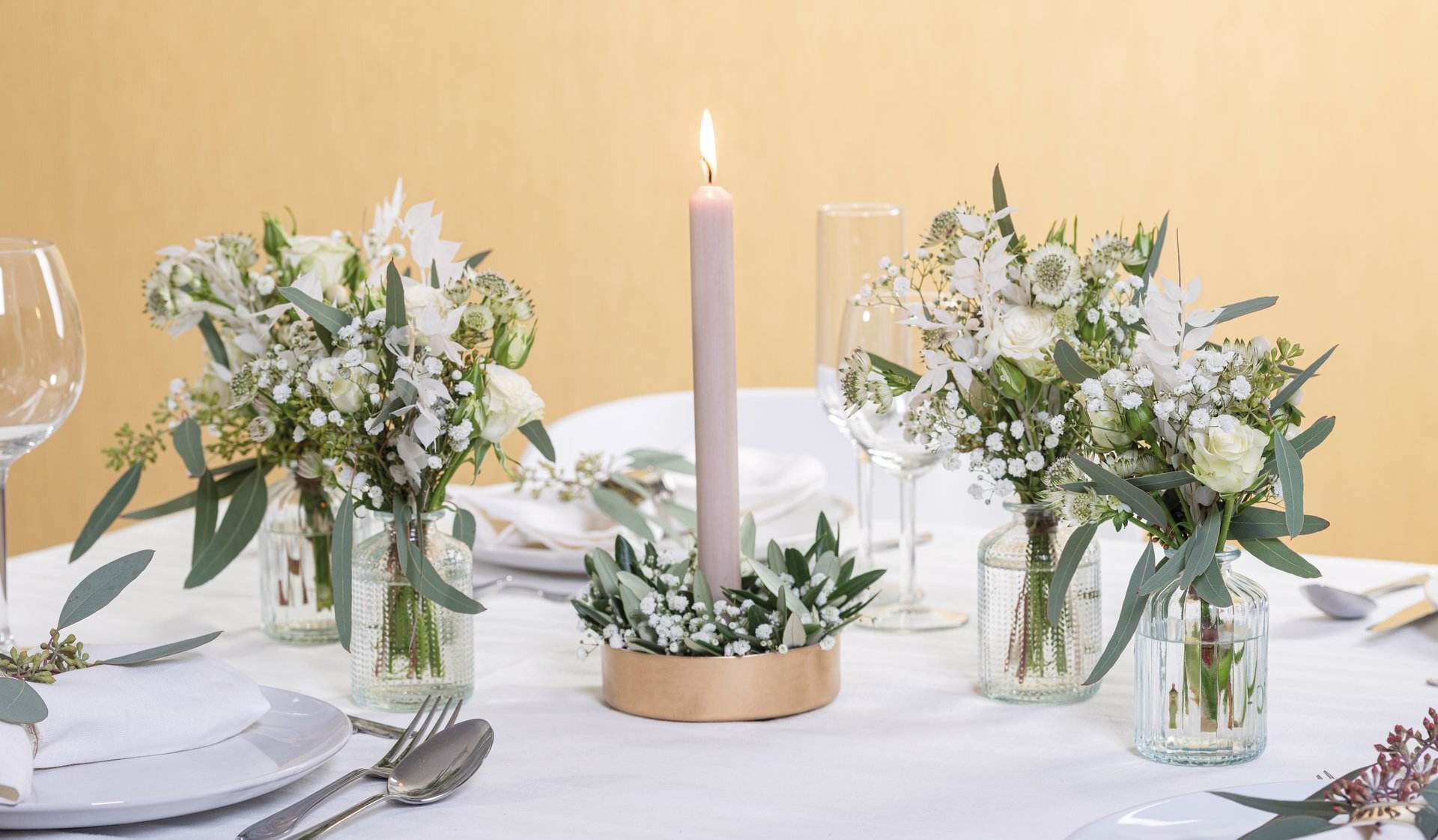Glasvase in Flaschenform. 2-fach sortiert: gerillt und in Fischgrät-Optik. Öffnung: Ø 2,5 cm.