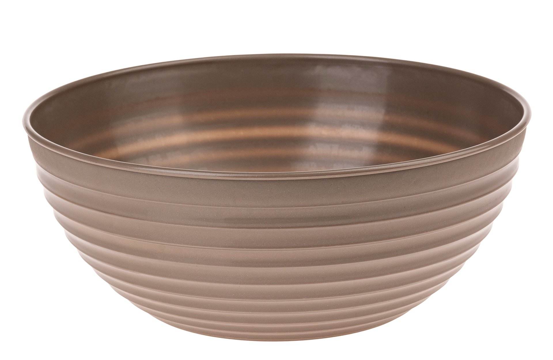 Bac plastique de forme ronde, d'aspect vieilli brillant.