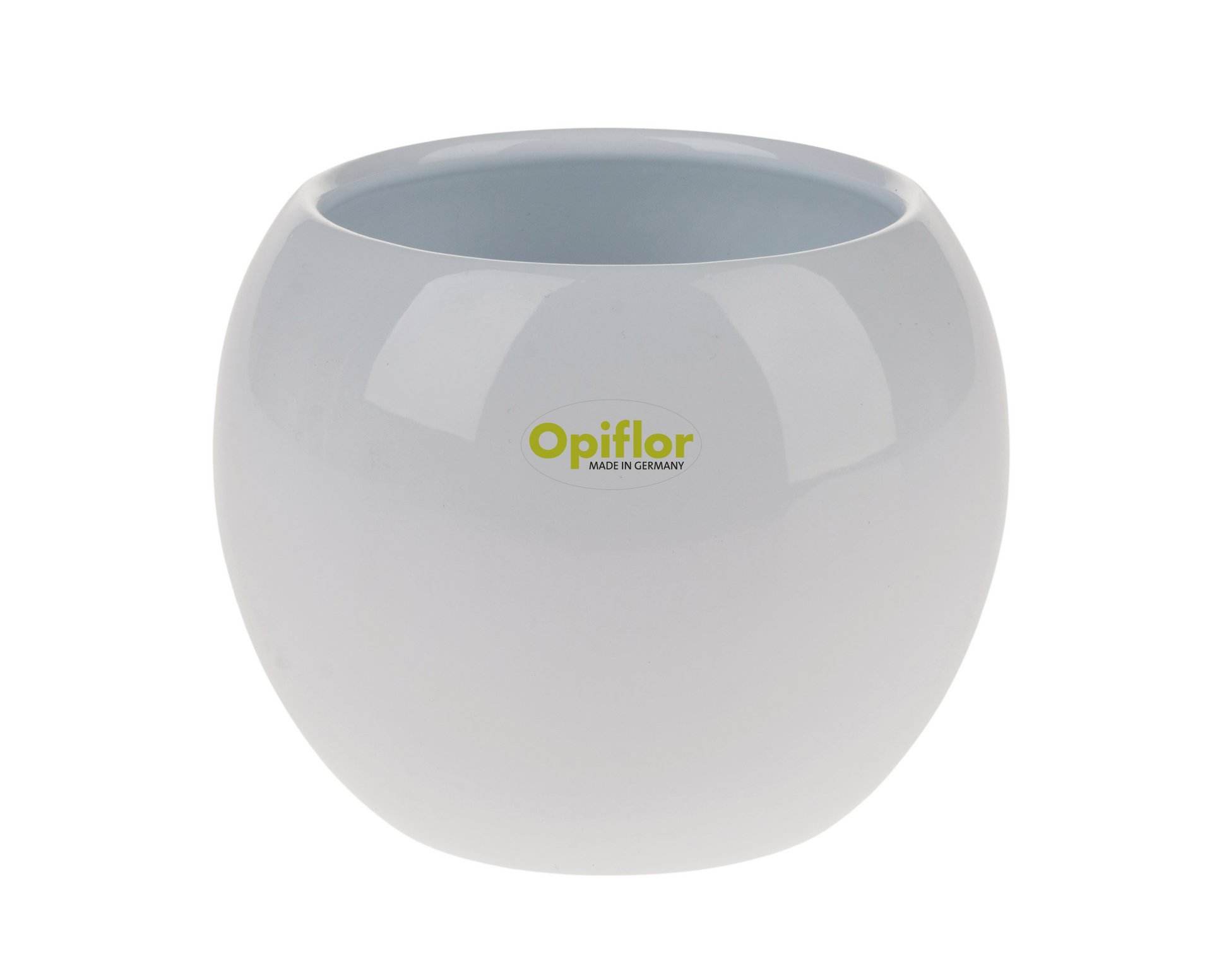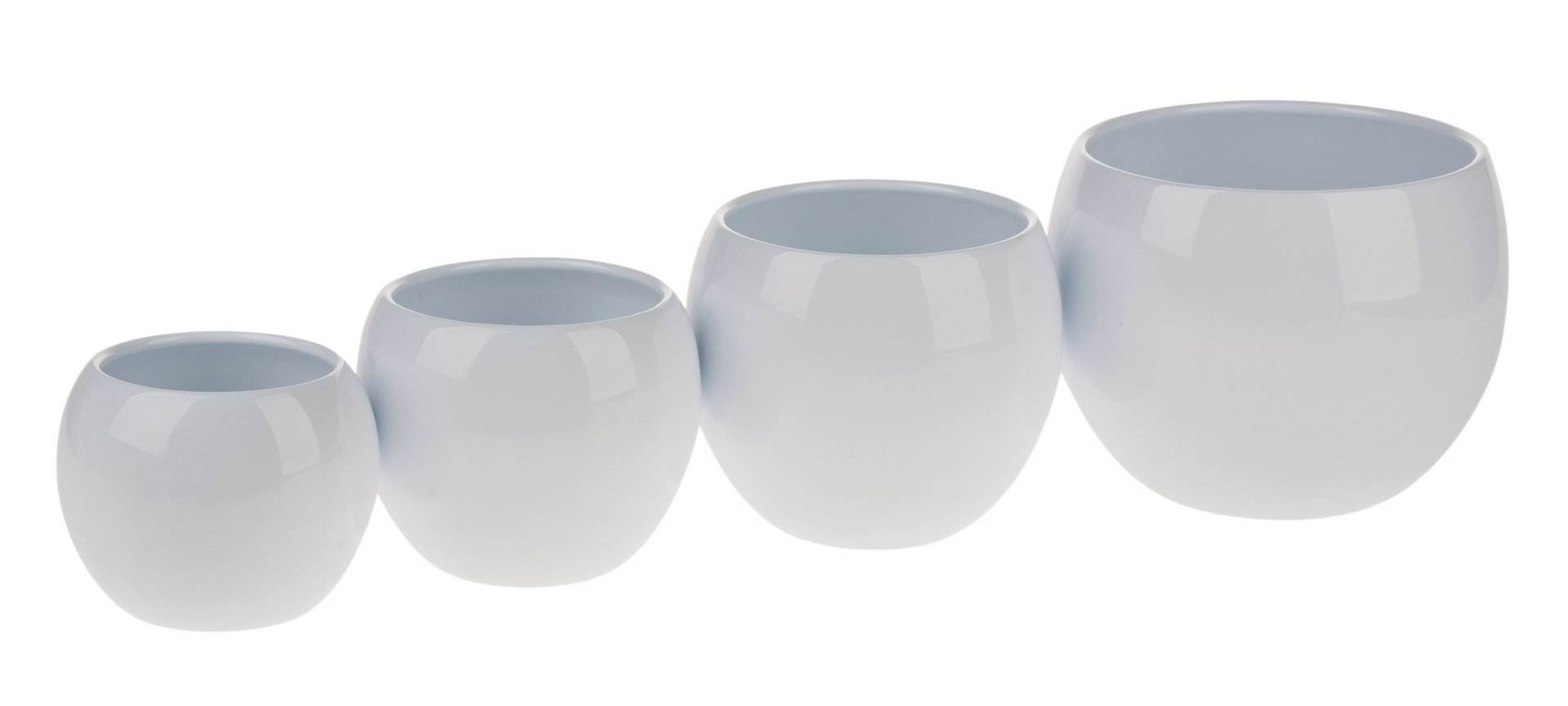 Pot en céramique brillant en forme de boule, disponible en différentes tailles et couleurs.